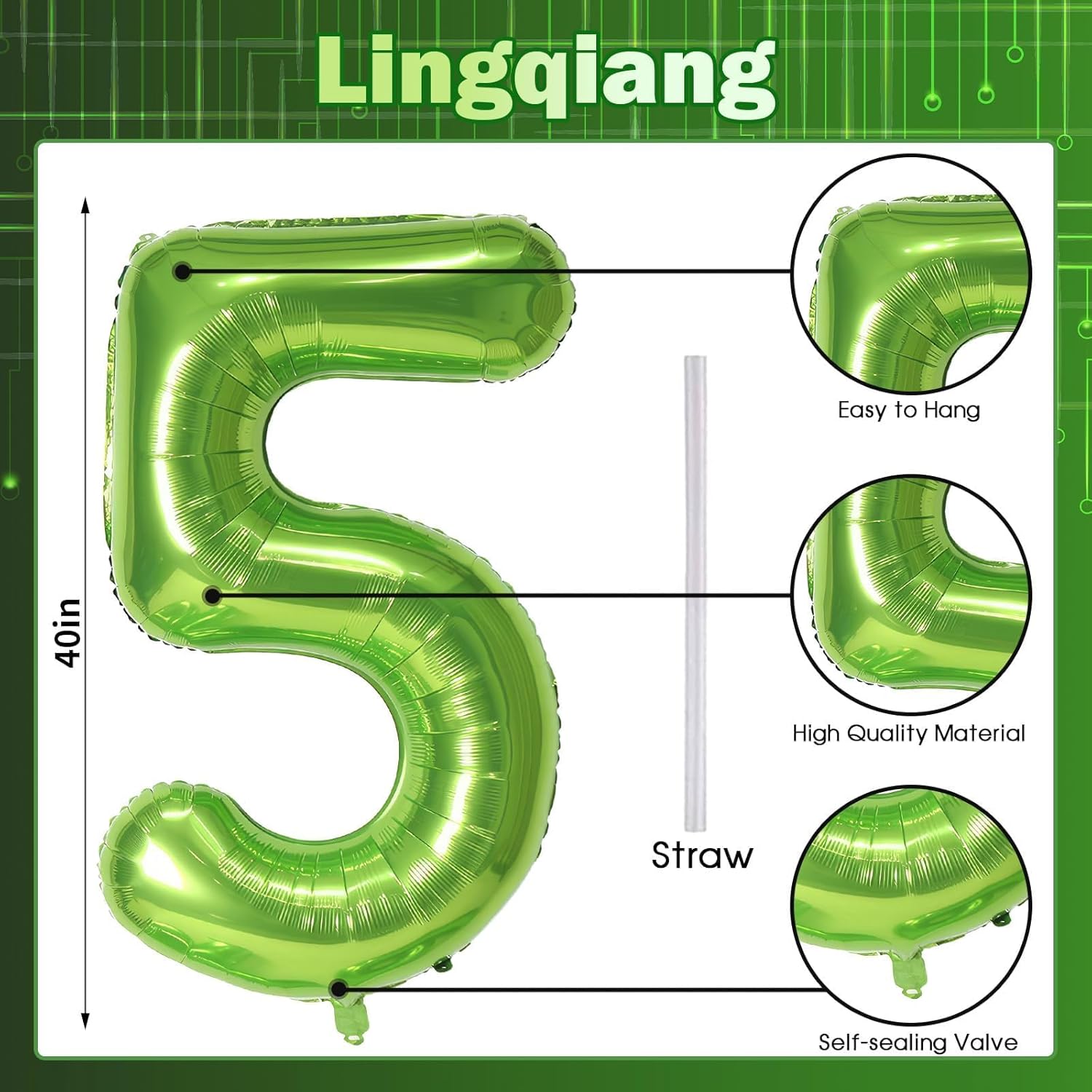 • πŸŽ‰ Green Number 5 Balloon πŸŽ‰ - You will get 1pc 40 inch mylar foil number 5 balloon and 1pc straw. Perfect for 5th 15th 25th 50th 45th birthday or anniversary party decorations supplies.