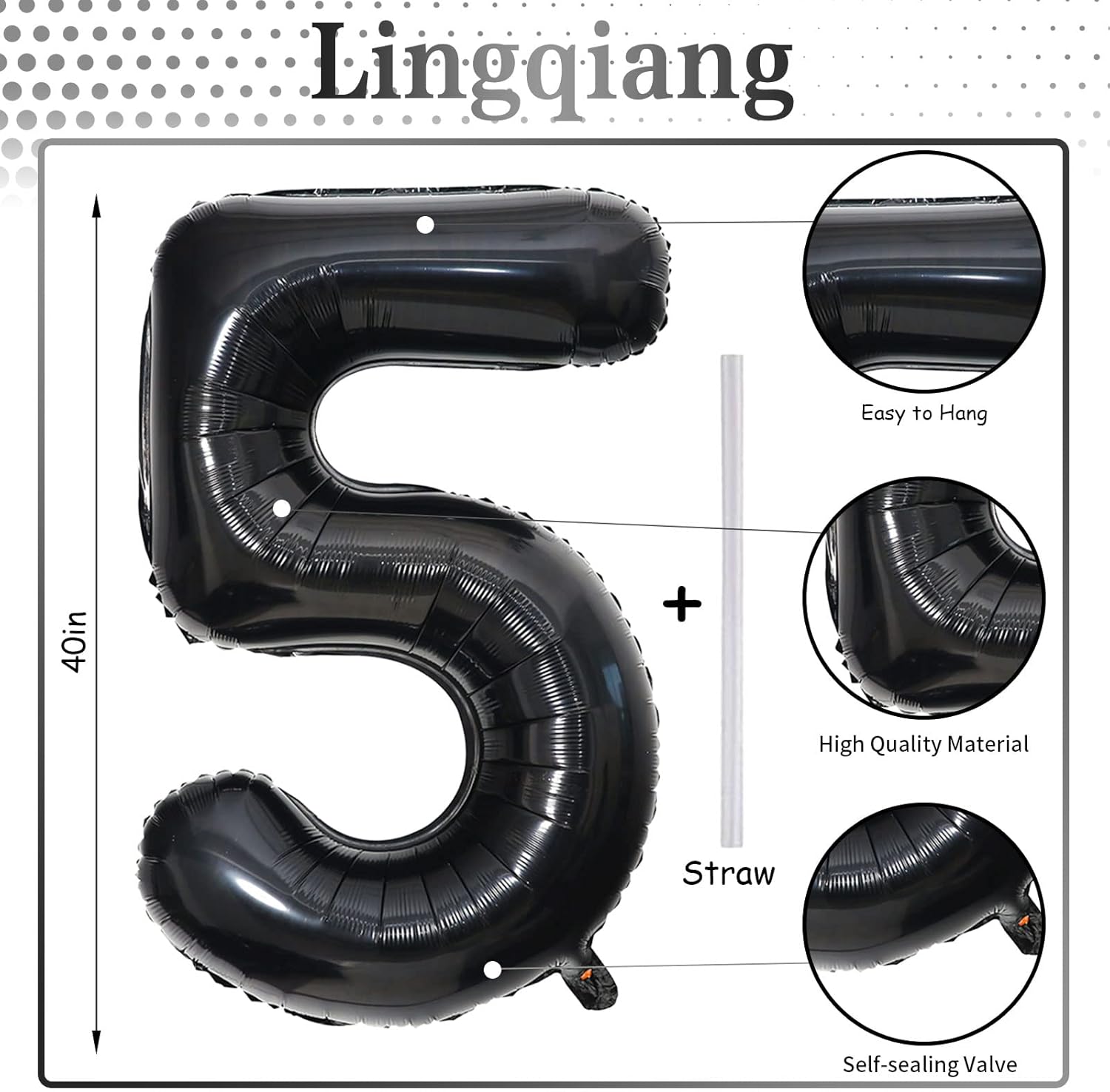 • πŸŽ‰ Black Number 5 Balloon πŸŽ‰ - You will get 1pc 40 inch mylar foil number 5 balloon and 1pc straw. Perfect for 5th 15th 25th 50th 45th birthday or anniversary party decorations supplies.