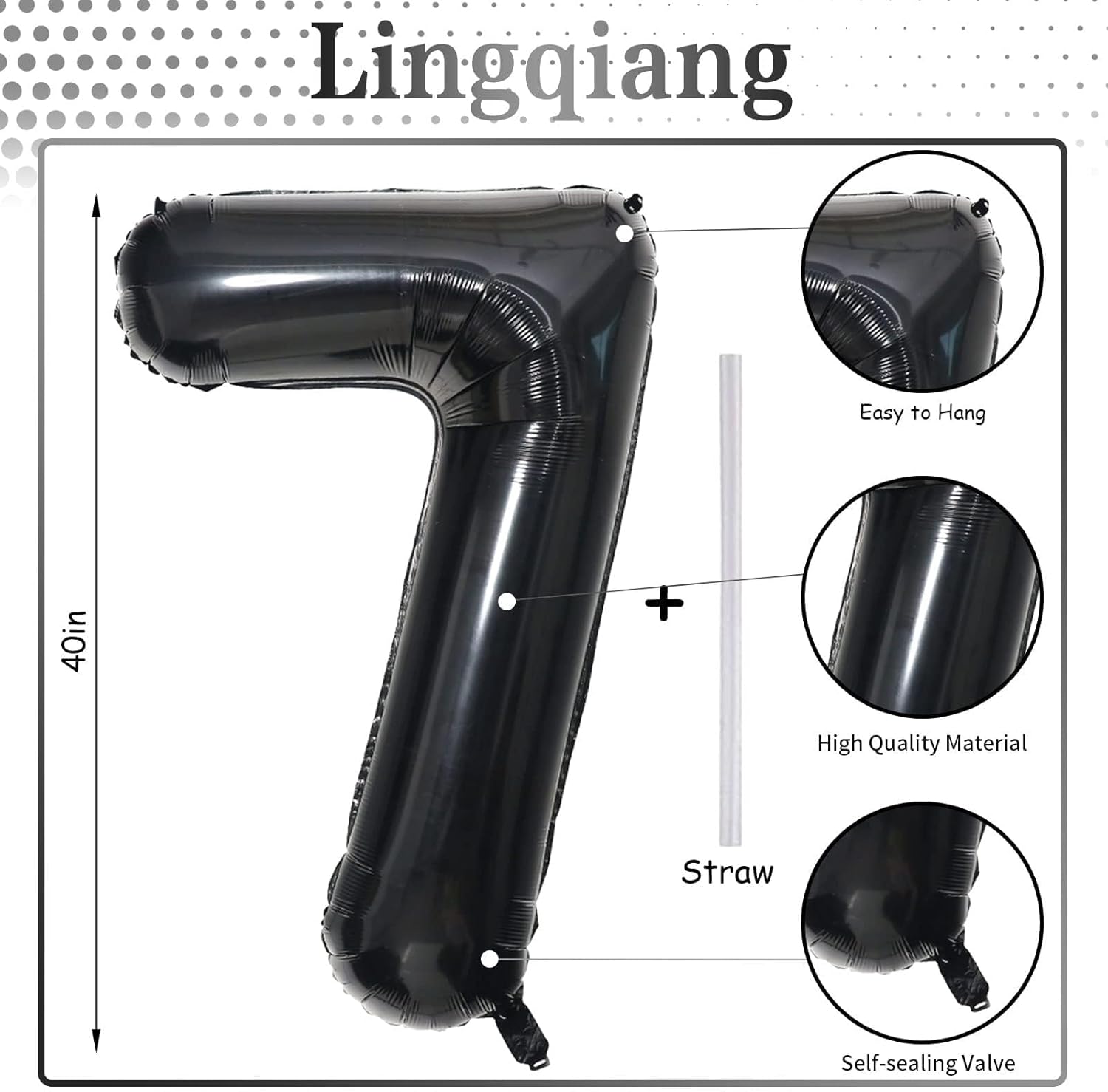 • πŸŽ‰ Black Number 7 Balloon πŸŽ‰ - You will get 1pc 40 inch mylar foil number 7 balloon and 1pc straw. Perfect for 7th 17th 27th 70th 75th birthday or anniversary party decorations supplies.
