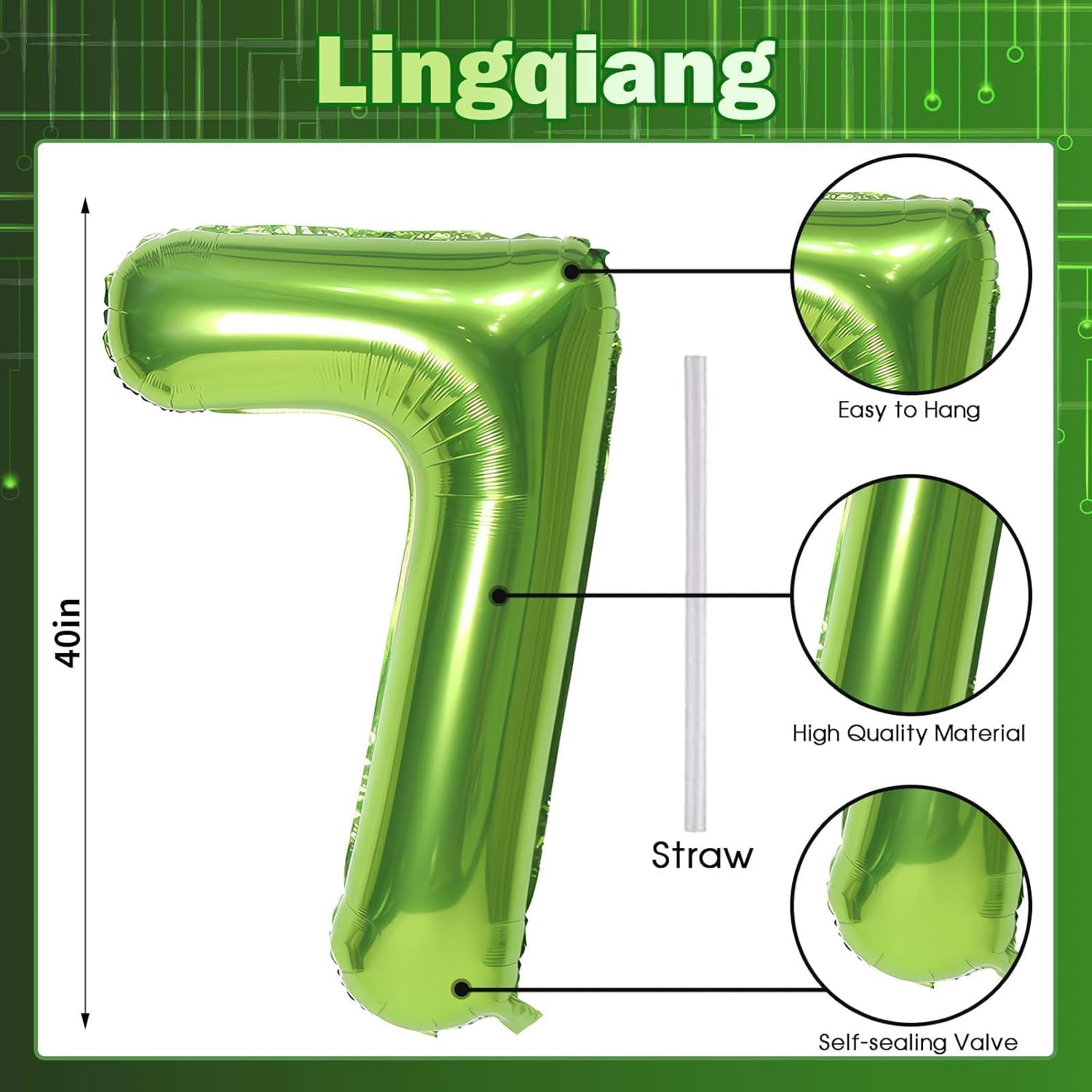 • πŸŽ‰ Green Number 7 Balloon πŸŽ‰ - You will get 1pc 40 inch mylar foil number 7 balloon and 1pc straw. Perfect for 7th 17th 27th 70th 75th birthday or anniversary party decorations supplies.