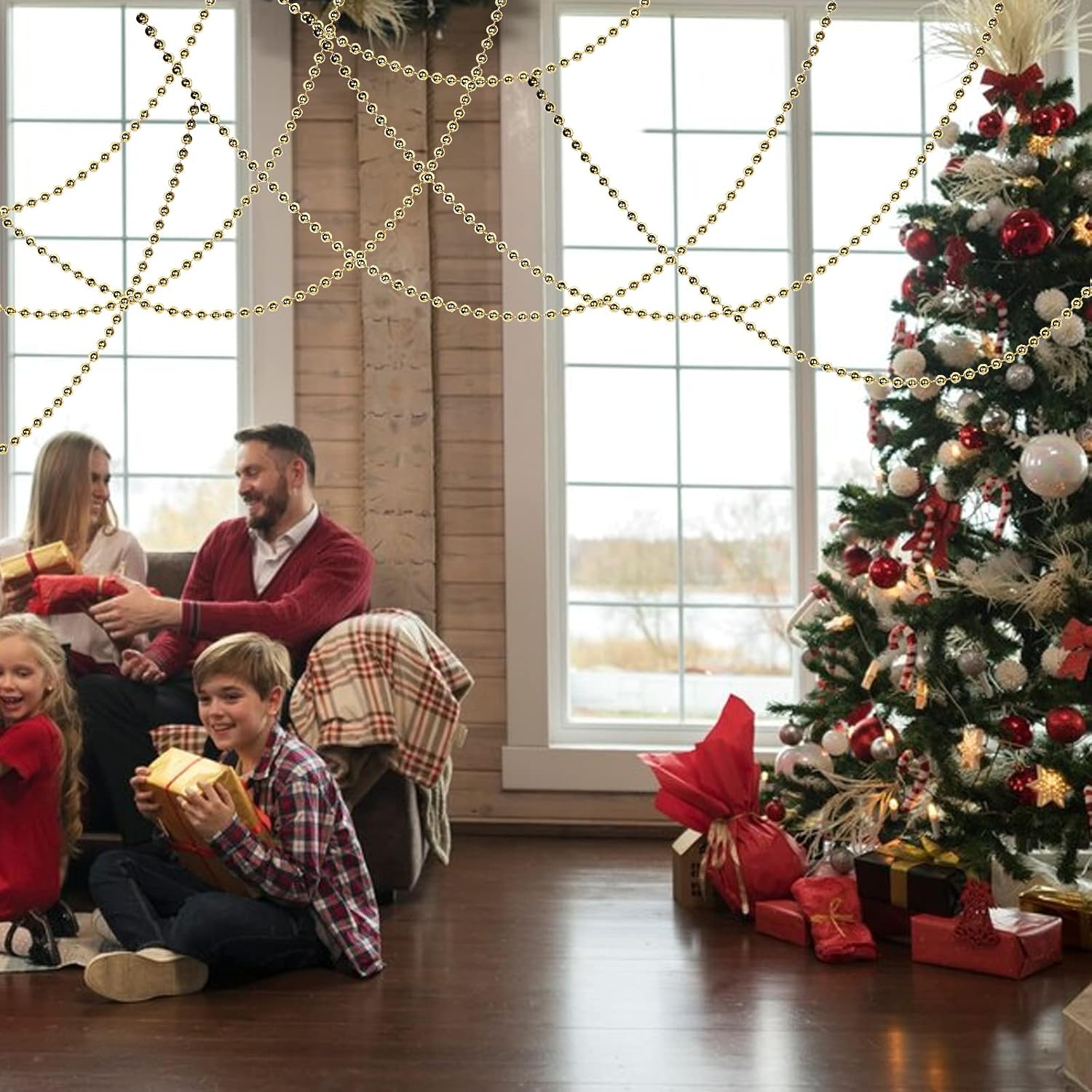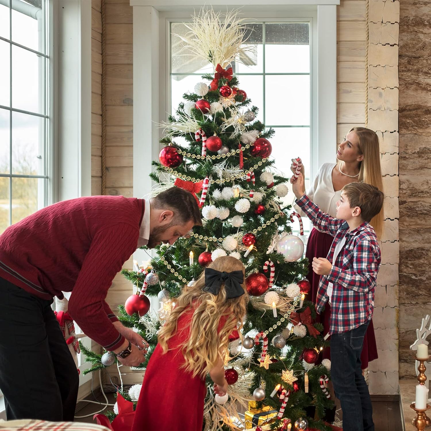 • Faux Pearl Beads Garland: Faux pearl rolls can be cut to the desired length. You can easily adjust the pearl strand length and cut to any length you need for your ornaments or DIY crafts. Each pearl is melted on a sturdy nylon cord, so it won't scatter, and it's easy to handle