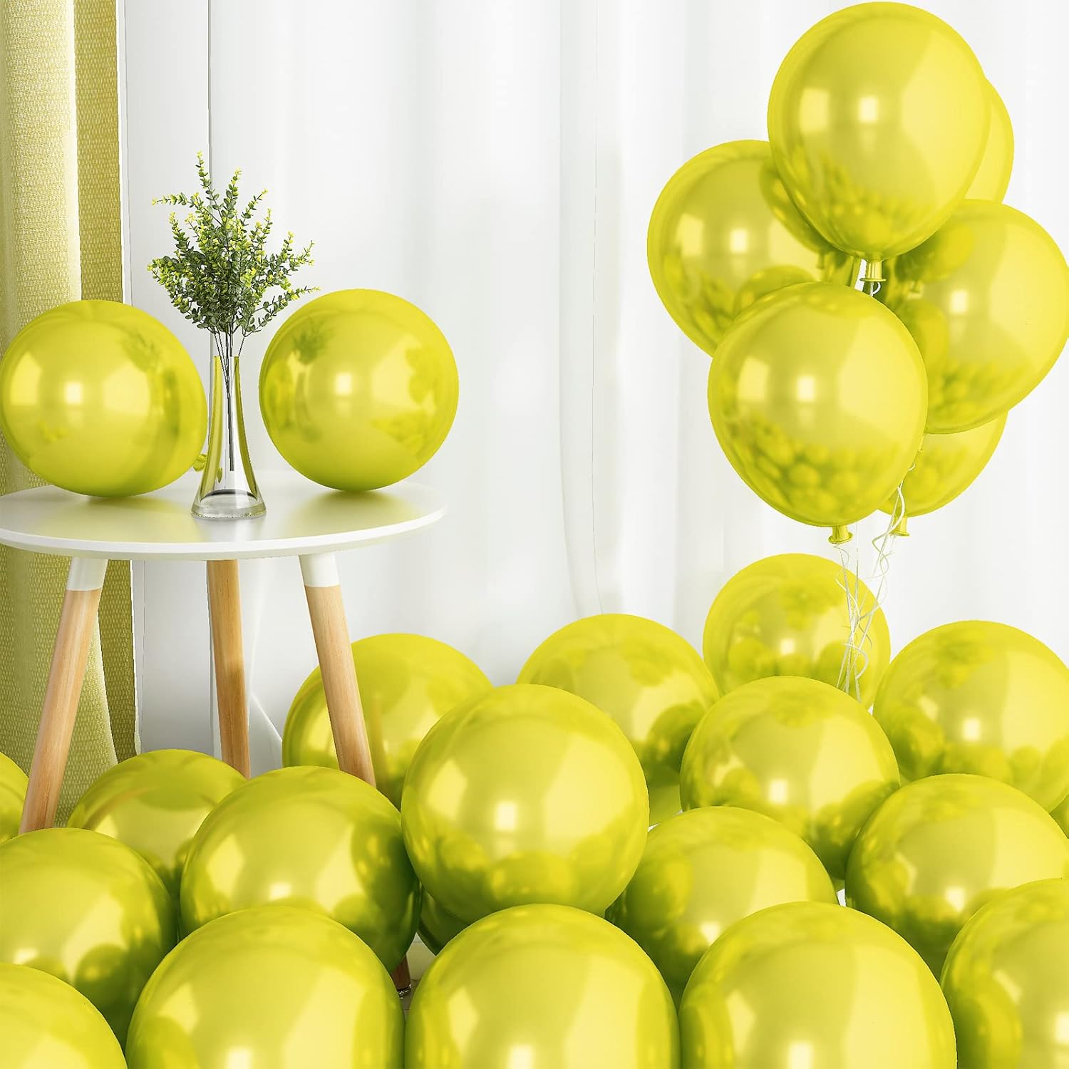 • 🎈50 PCS METALLIC CHROME YELLOW BALLOONS: The valued party balloon set include 50pcs 10inch double layer metallic chrome yellow balloons and 1pcs ribbon. Metallic luster unique design balloons for every party.