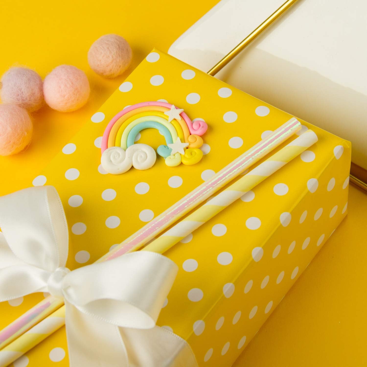 • REVERSIBLE: A solid yellow side and a yellow/white polka dot side. Two different classic designs make beautiful and varied gift presentations easy.