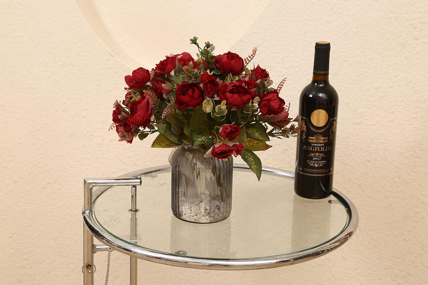 • The Simulation flowers bouquet each has 5 branches, with 3 large flowers & 6 little Peony flowers and Some plastic grass with plastic stems. All length 11.41inches/29 cm,Color:Wine Red.We offer 2 packs in one set,Stems can be bent or cut arbitrarily used them in combination with other flowers in centerpieces,It looks beautiful and real