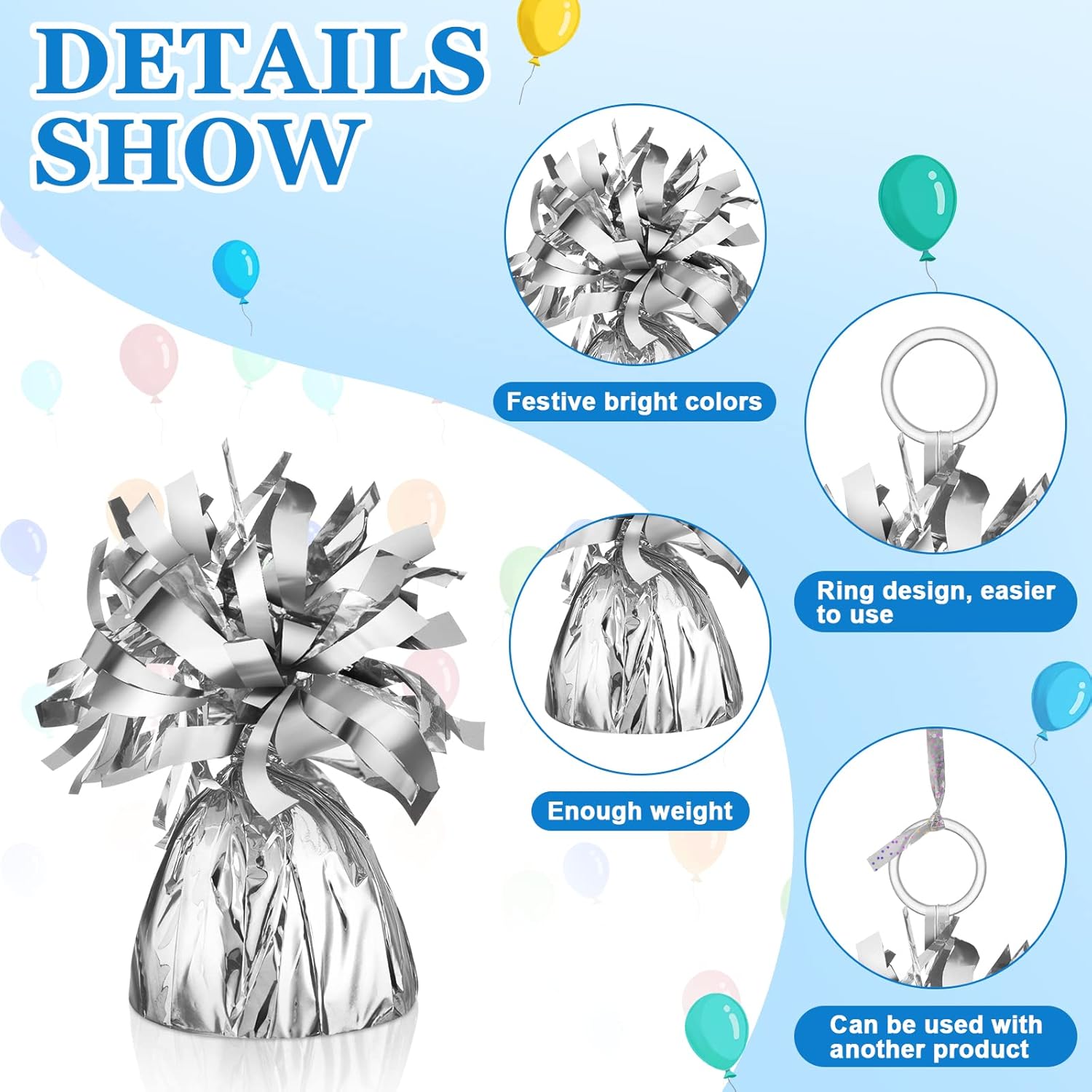 • Silver Theme Design: the silver string for balloons and the balloon weight are designed in bright silver, which can shine with different light sources, exquisite and delicate, helping enhance your holiday or party atmosphere