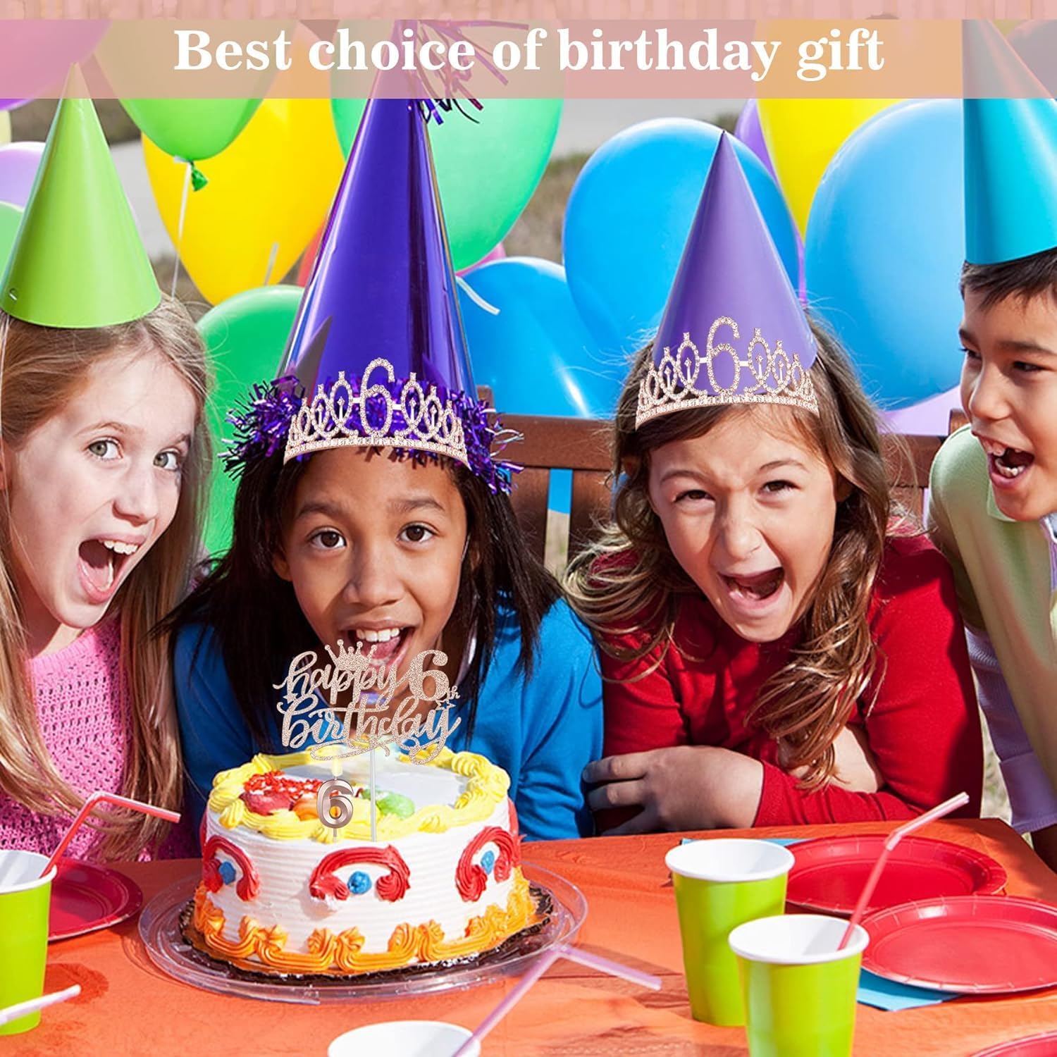 • 6th Birthday Decorations: Birthday Sash for Girls *1pc, Birthday Girl Crown*1pc, Happy 6th Birthday Cake Topper *1pc, Numeral 6 Candles *1pc. All be packed in a beautiful gift box ready for good presentation