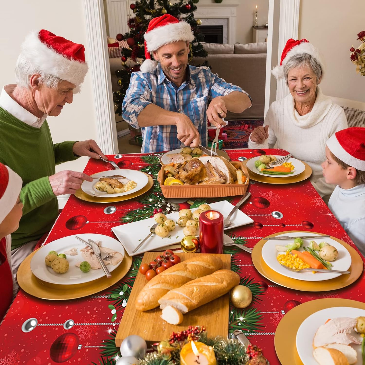 • Large size: the rectangle Xmas tablecloth measures 54 x 108 inches/137 x 274cm,which fits for most rectangle 8-10 seats tables, it is large enough to decorate your Christmas themed party, is an ideal addition to any Christmas table