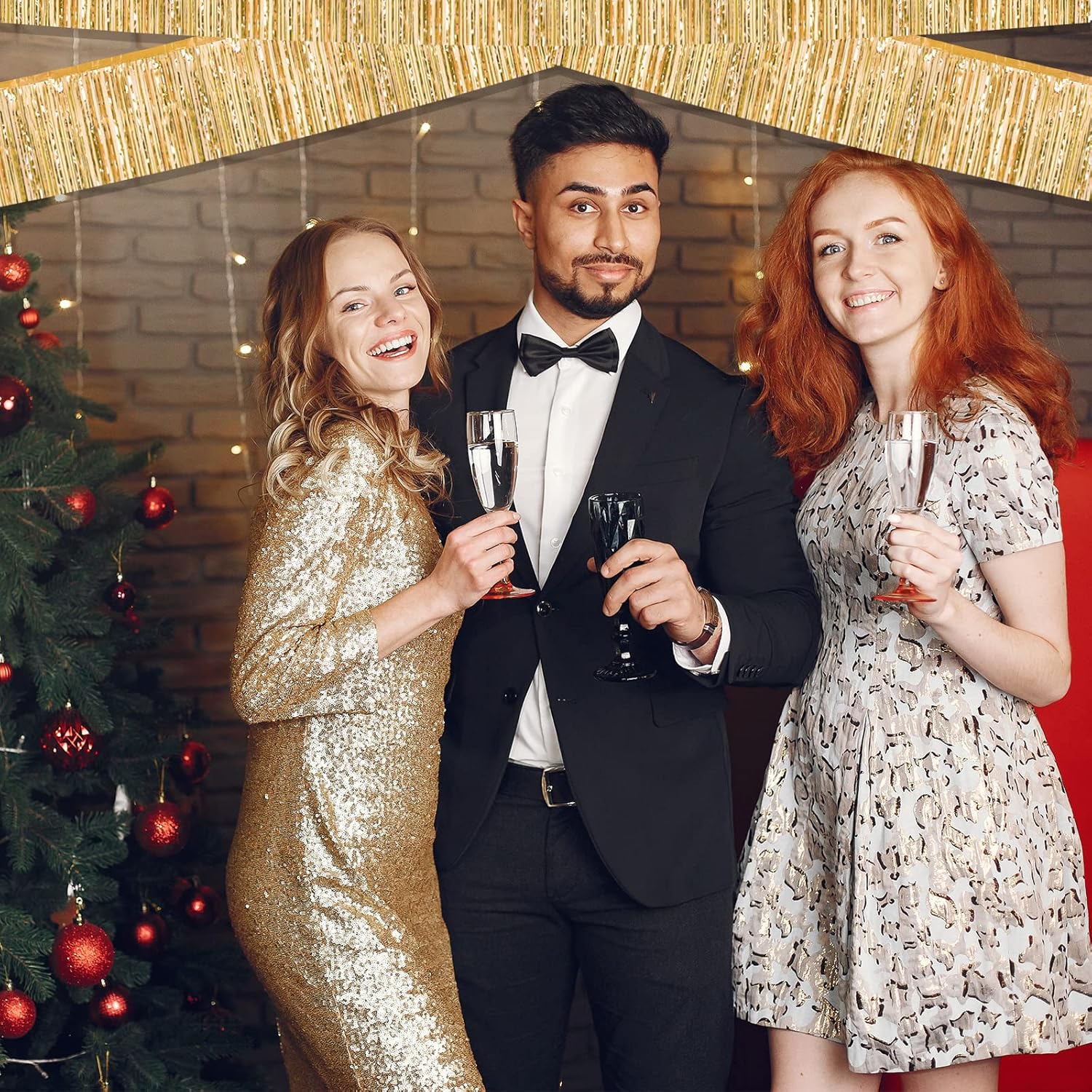 10 Pack 10 Feet Foil Fringe Garland Metallic Tinsel Streamers Banner Wall Hanging Curtain Backdrop for Parade Floats, Wedding, Disco, Birthday, Halloween, Christmas Party Decorations(Champagne Gold)