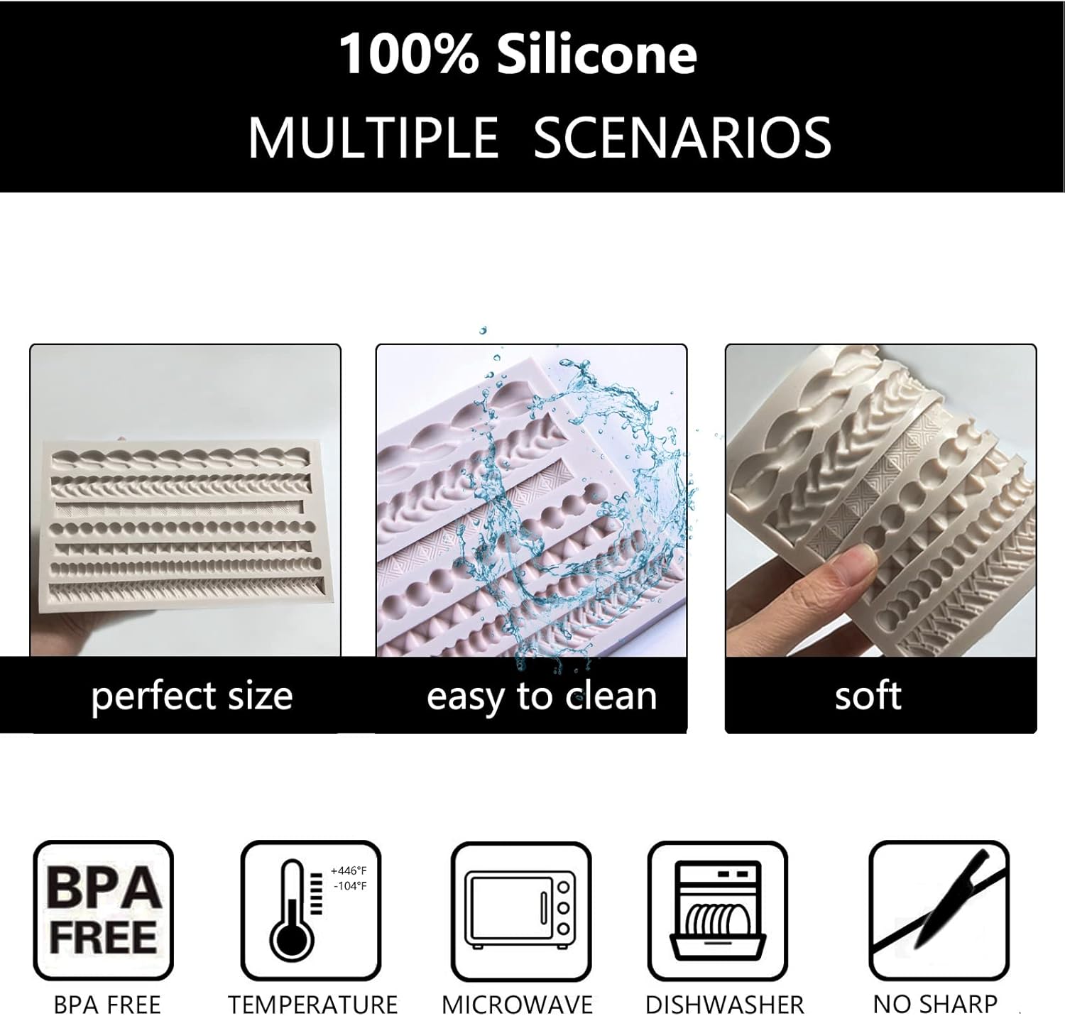 • [EASY TO USE & CLEAN]: These frame fondant molds are soft and flexible. Will non-crack after a long time of use. It can easy relief mold. Wash with water or put them in the dishwasher after use is ok