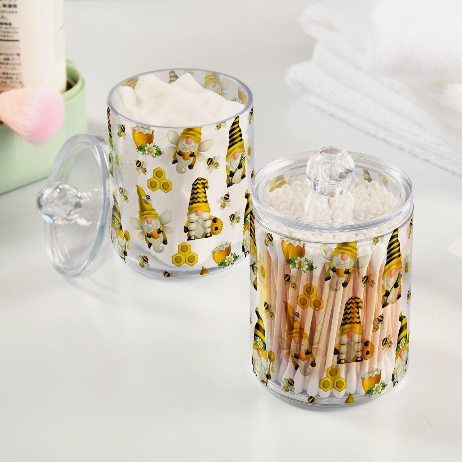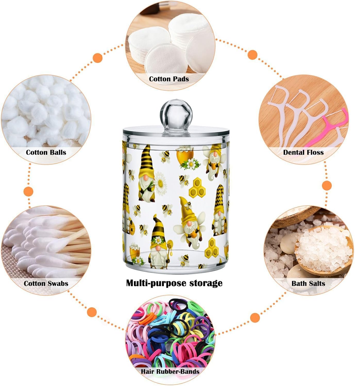 Qtip Holder Dispenser 4 Pack Gnome Bees Flying Dwarf Daisy Apothecary Jars with Lids Bathroom Vanity Countertop Canister Storage Organizer for Cotton Ball,Swabs,Pads,Floss