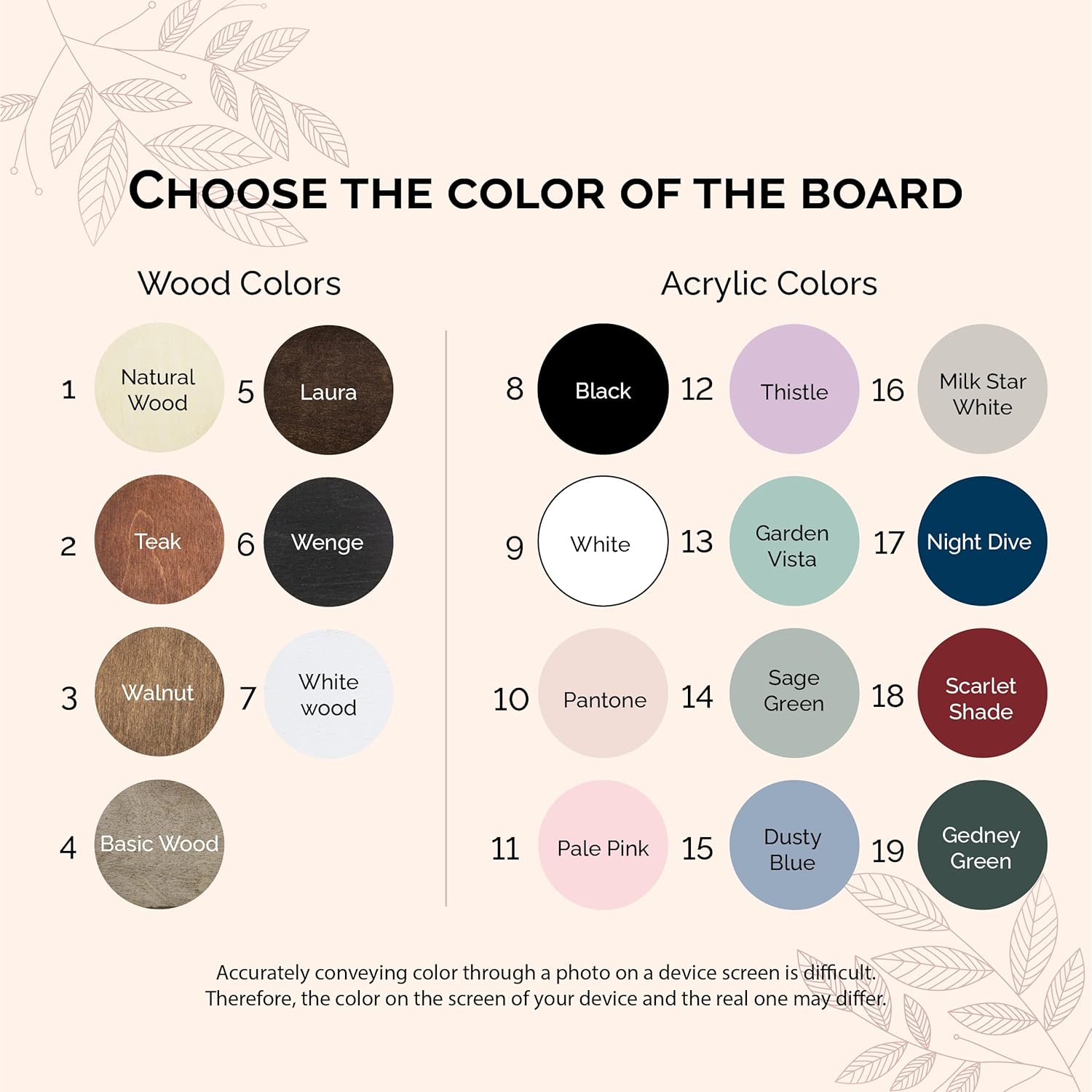 • COLORED LETERS: It is also possible to choose one of the designs with your name or initials and the date of your choice. In the center, your inscription can be black, white, silver or gold.