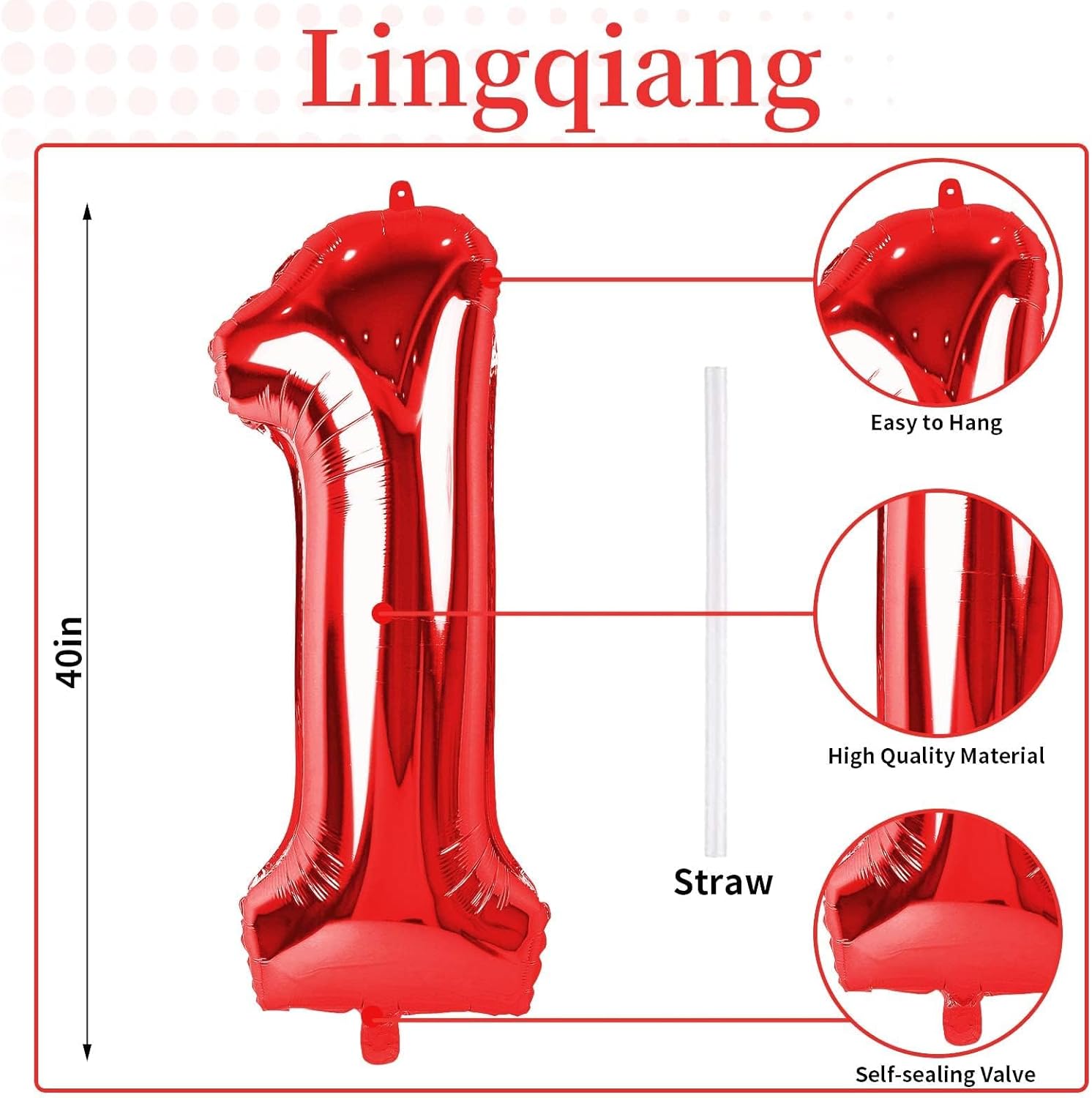 • πŸŽ‰ Red Number 1 Balloon πŸŽ‰ - You will get 1pc 40 inch mylar foil number 1 balloon and 1pc straw. Perfect for 1st 10th 12th 13th 15th 16th 17th 18th 21st birthday or anniversary party decorations supplies.