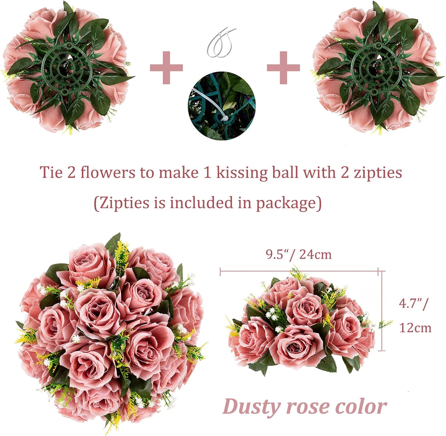 BLOSMON Dusty Pink Flowers Centerpieces: 2 Pcs Artificial Roses Flowers Balls for Wedding Dinning Table - Fake Silk Kissing Floral Arrangement for Home Party Event Decor