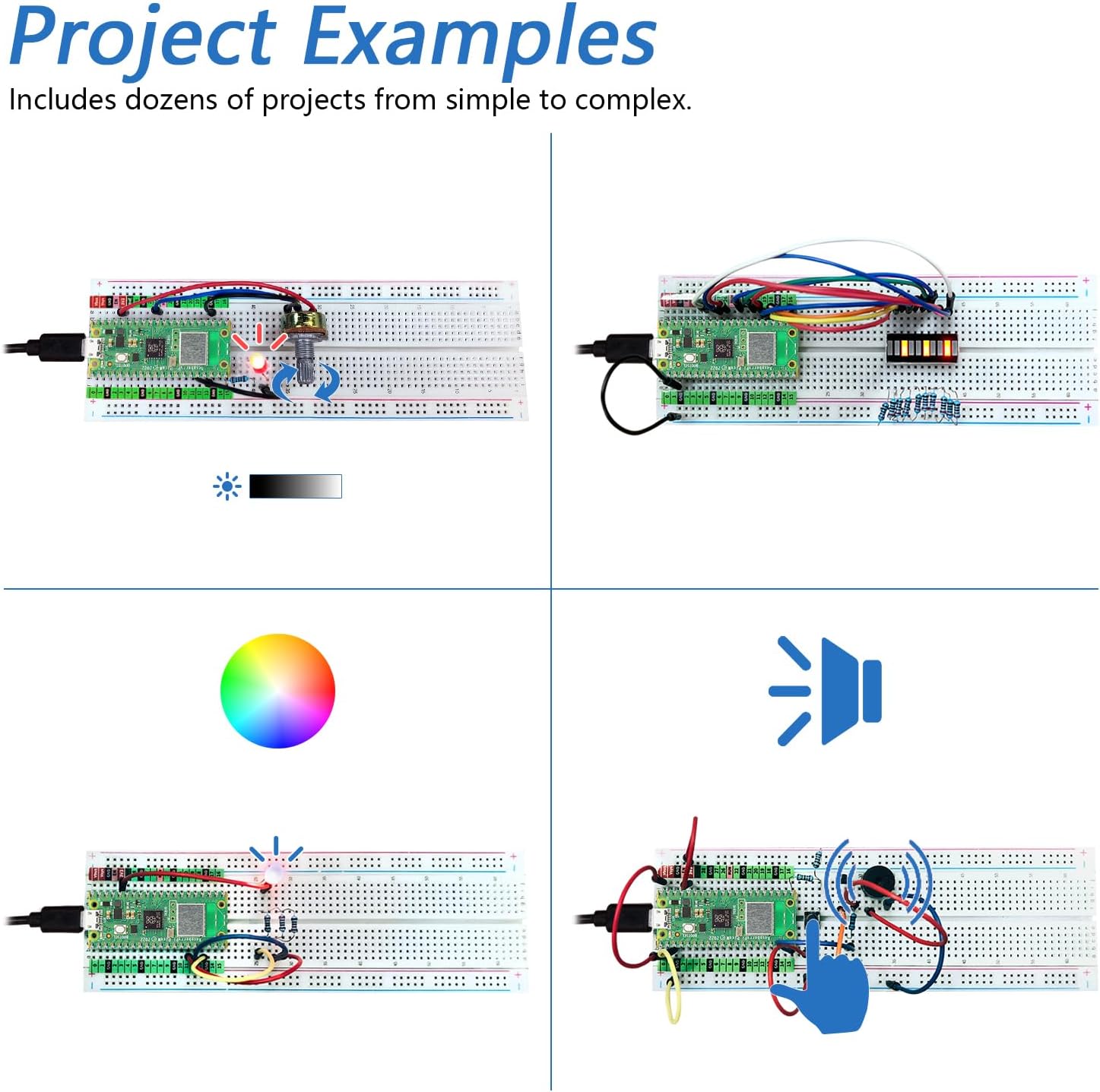 Freenove Basic Starter Kit for Raspberry Pi Pico W (Included), Dual-core Arm Cortex-M0+ Microcontroller, 386-Page Detailed Tutorial, 142 Items, 55 Projects, Python C Code