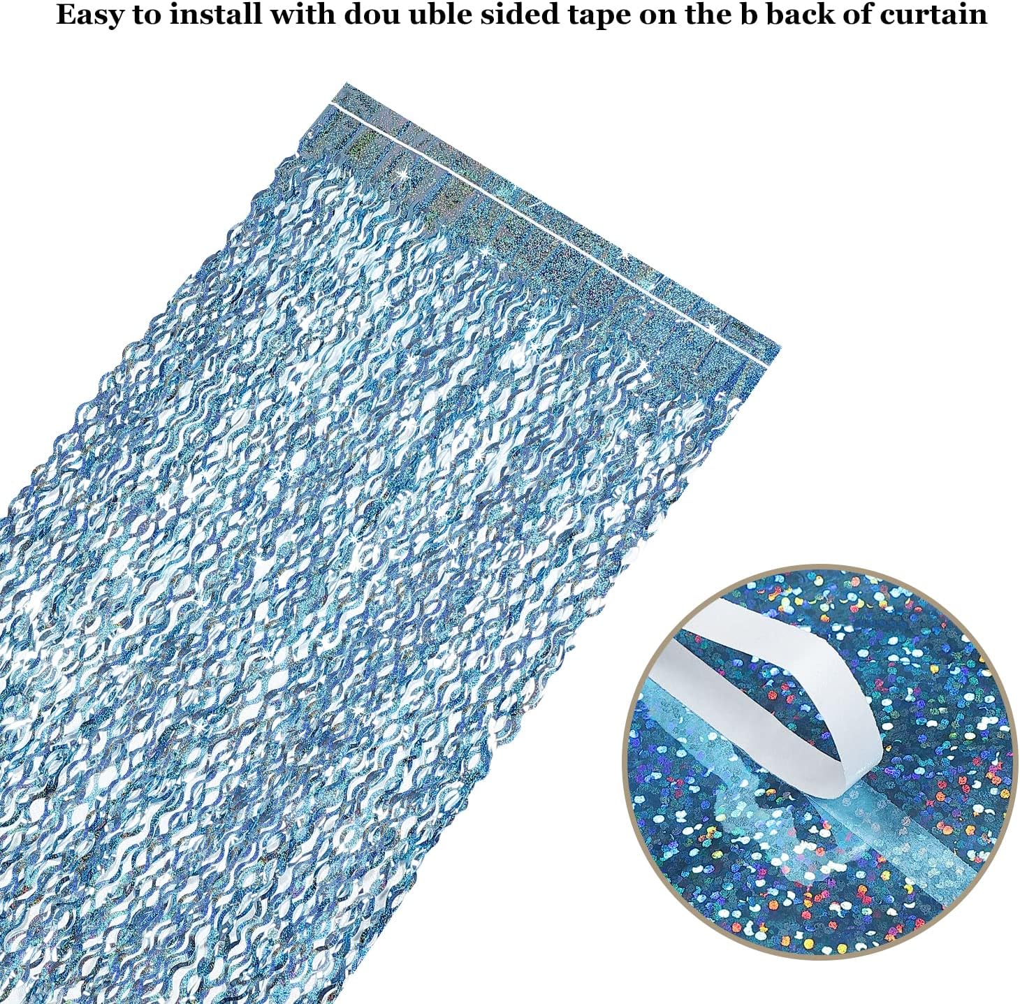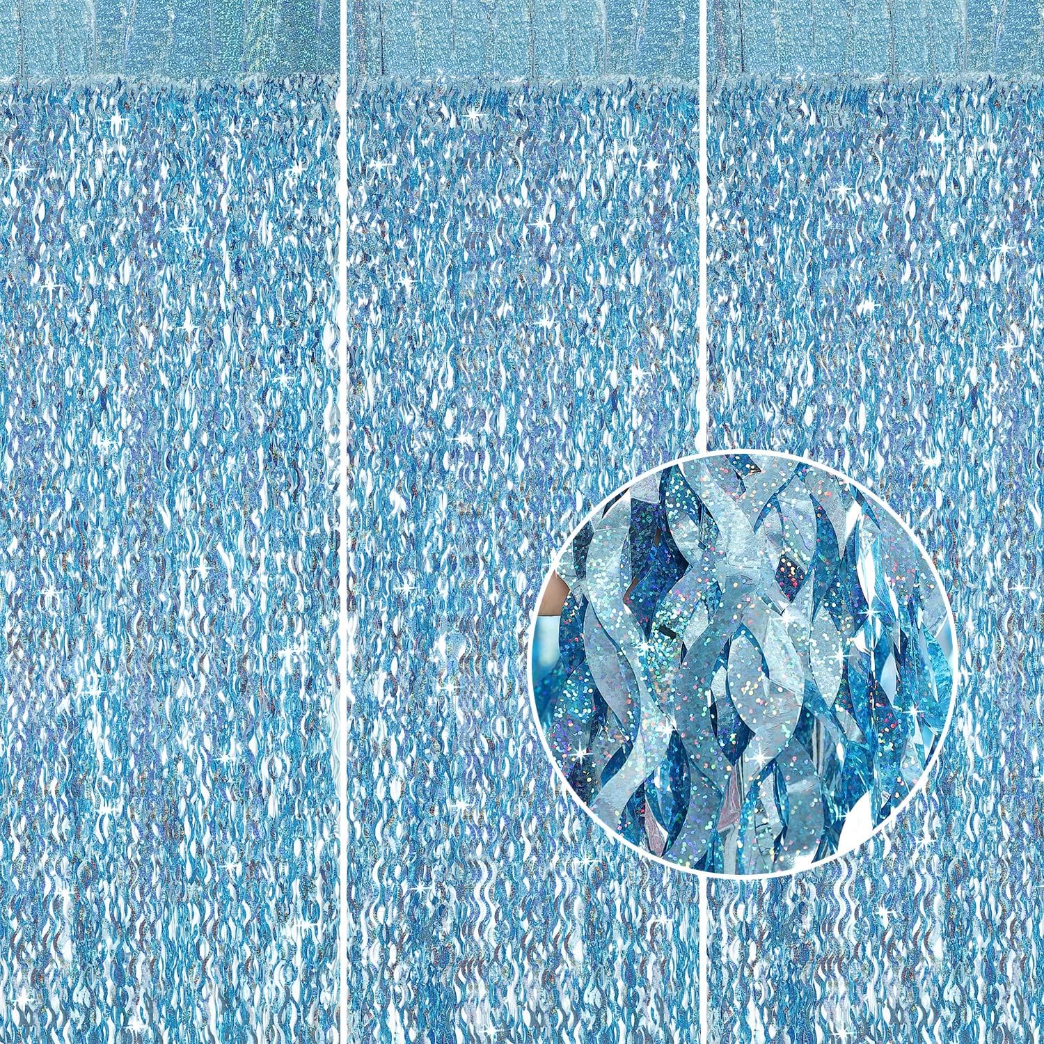 • Packing Included: 3 packs light blue tinsel foil fringe curtains party photo backdrop,Each pack curtains size is 3.3ft x 6.6ft, enough length for decorate your party