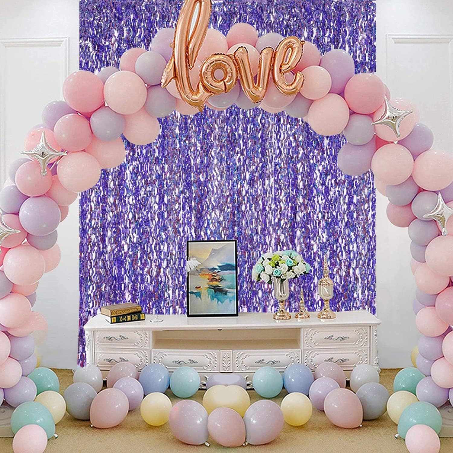 • Packing Included: 3 packs purple tinsel foil fringe curtains party photo backdrop,Each pack curtains size is 3.3ft x 6.6ft, enough length for decorate your party