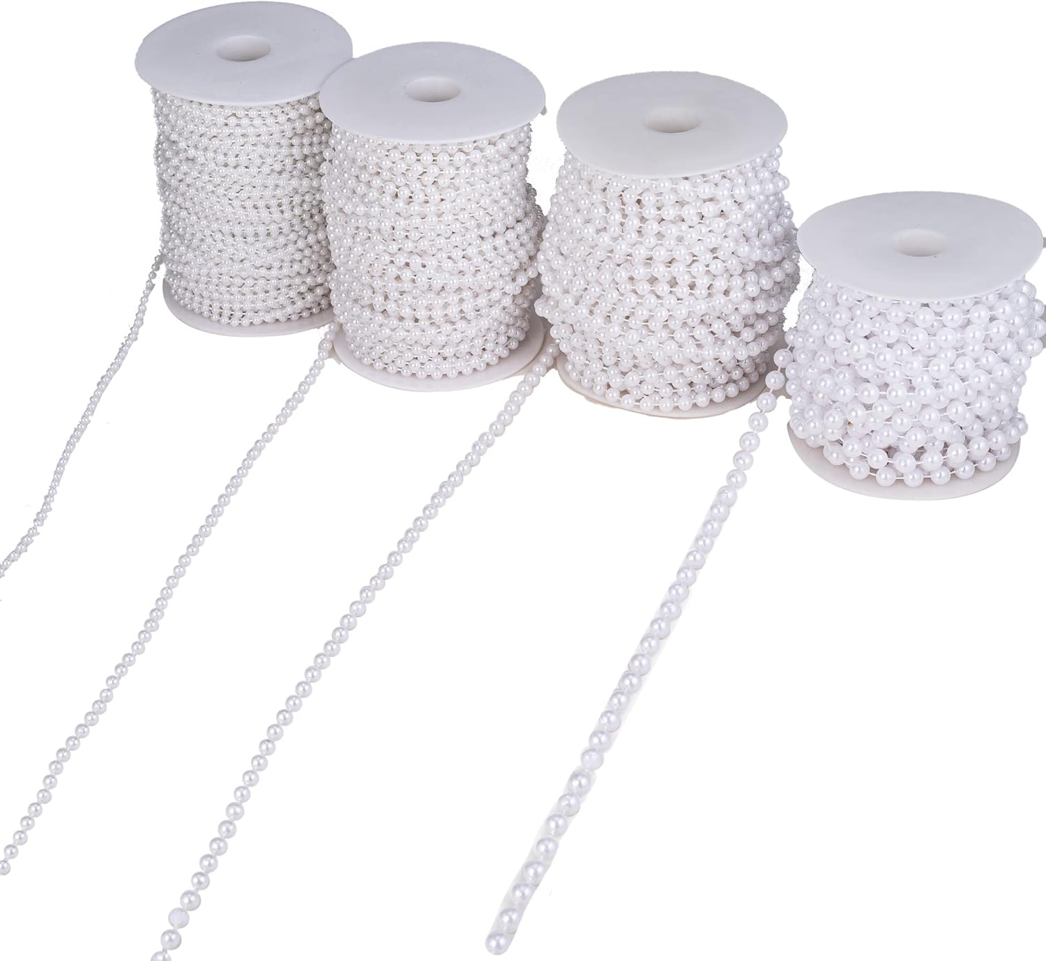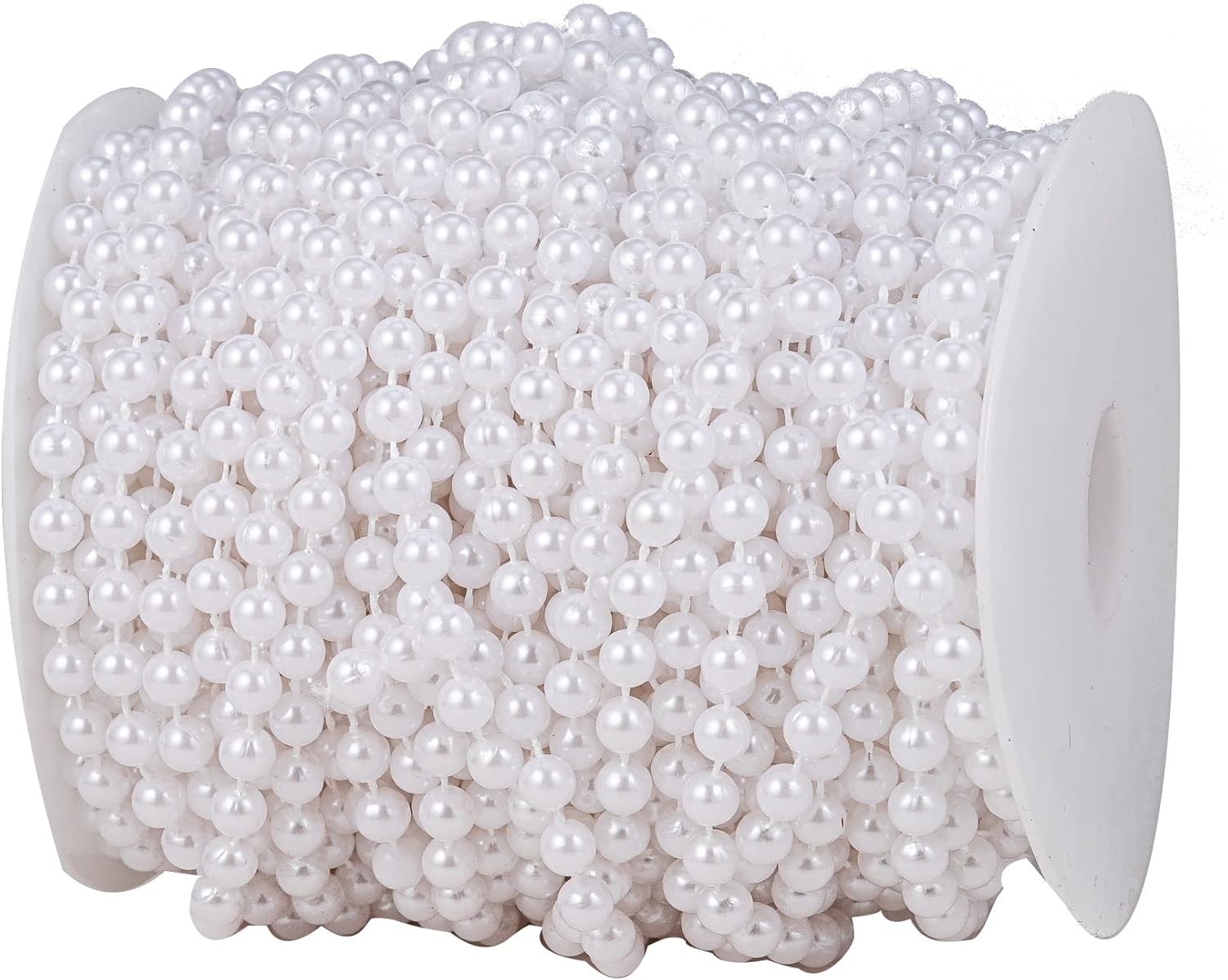 6mm Crafts Faux Pearl Beads Garland Pearl Bead Roll Strand of Pearls to Decorate Floral Centerpieces Wedding Party Favor Christmas Tree(82 Feet White)