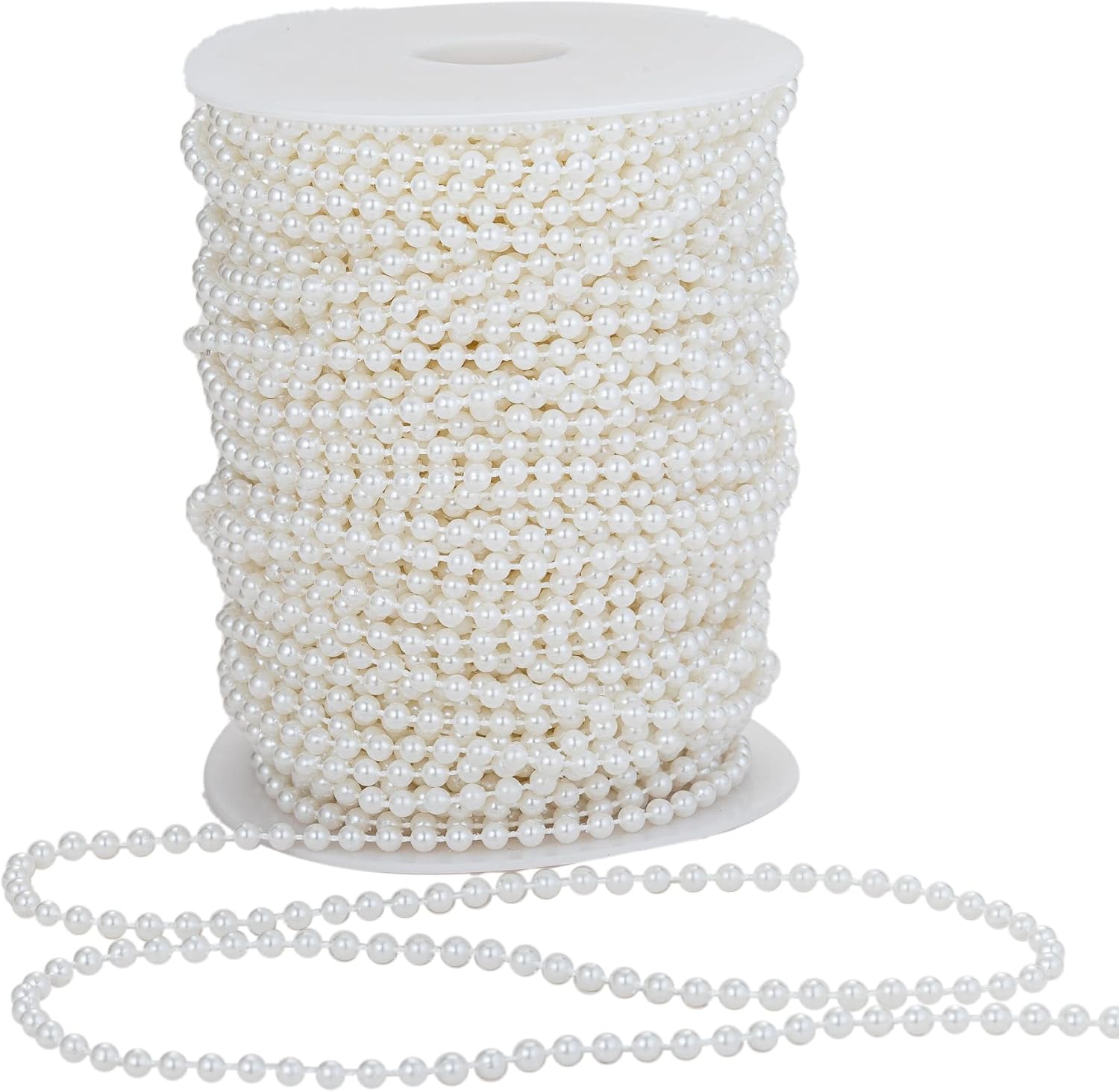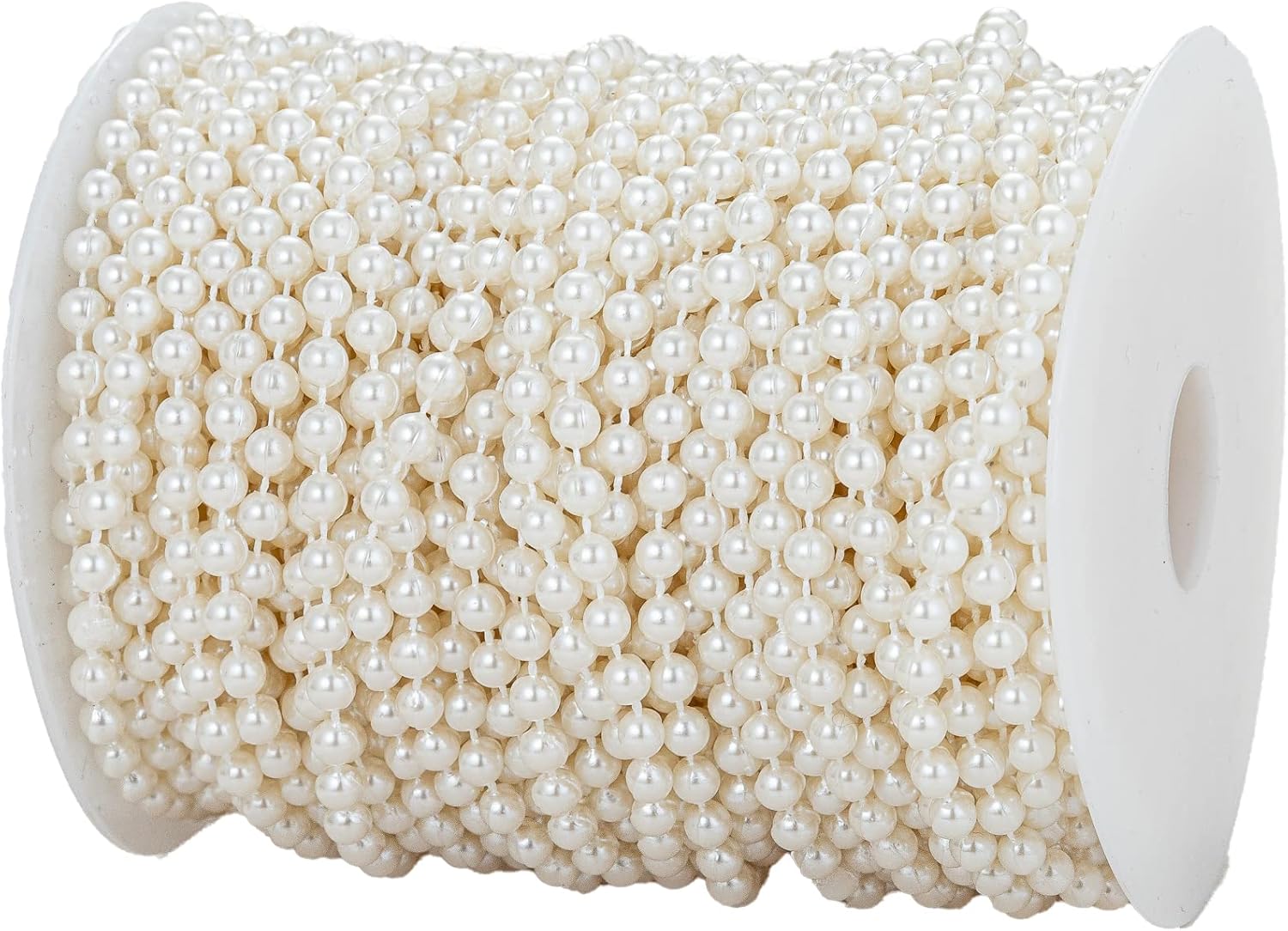 5mm Crafts Faux Pearl Beads Garland Pearl Bead Roll Strand of Pearls to Decorate Floral Centerpieces Wedding Party Favor Christmas Tree(99 Feet Ivory)