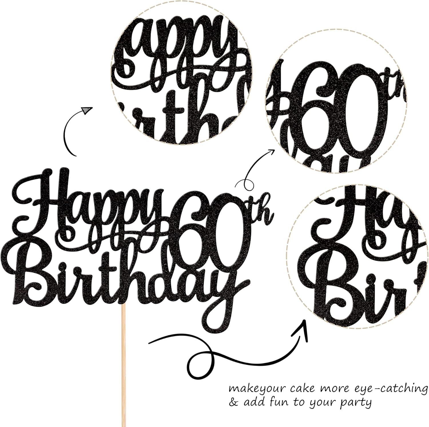 • Wide Usages ! The cake topper is perfect for happy 60th birthday theme party, cheers to 60 years birthday theme party cake decorations, they can make your cake more attractive and bring the fun to your party.You can also apply them for ice cream, fruits, cookies and other desserts.