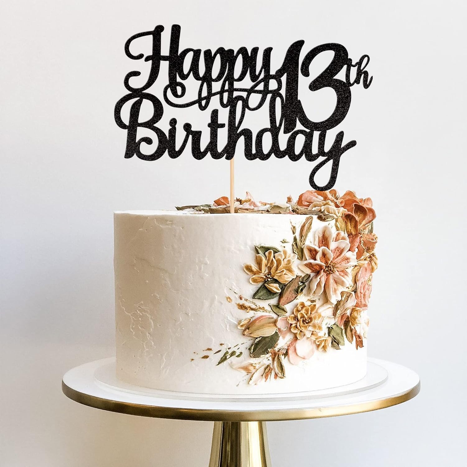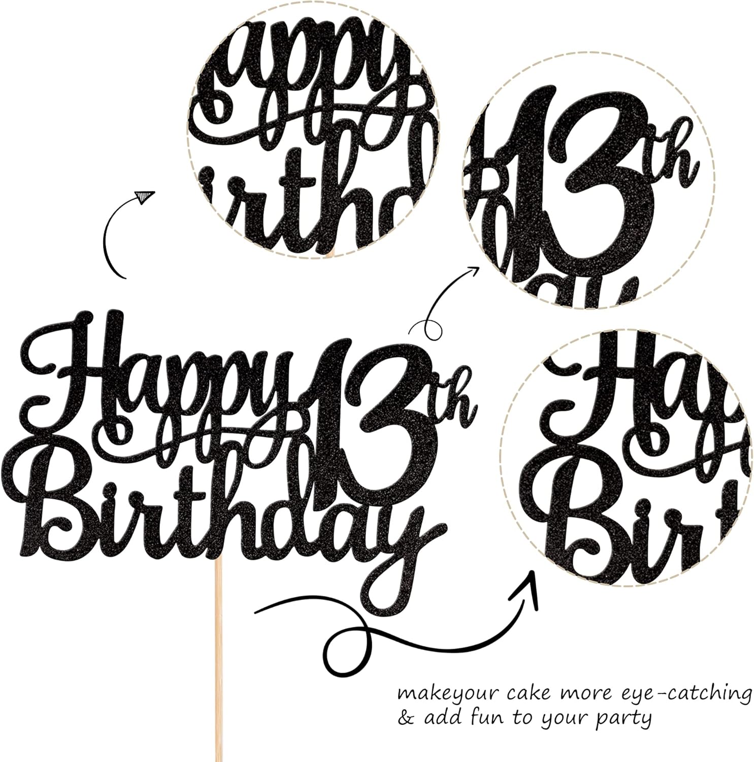 1 PCS Happy 13th Birthday Cake Topper Glitter Cheers to 13 Years Birthday Cake Pick Official Teenager 13 Fabulous Cake Decoration for Happy 13th Birthday Theme Party Decorations Supplies Black