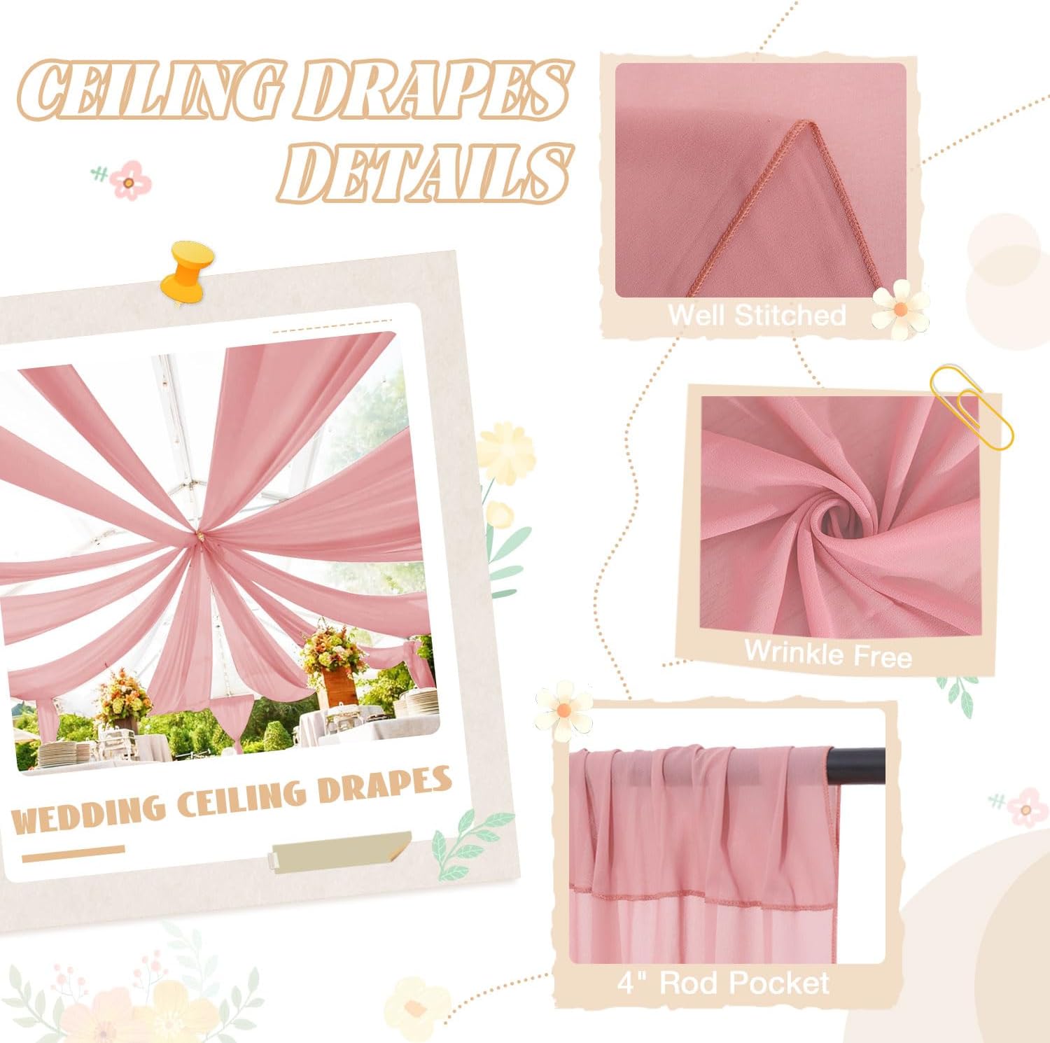 FUHSY Wedding Ceiling Drapes Sheer Fabric for Draping 2 Panels 5x20 FT Dusty Rose Backdrop Curtains for Party Wedding Arch Draping Fabric Chiffon Ceiling Curtains for Outdoor Wedding Ceremony