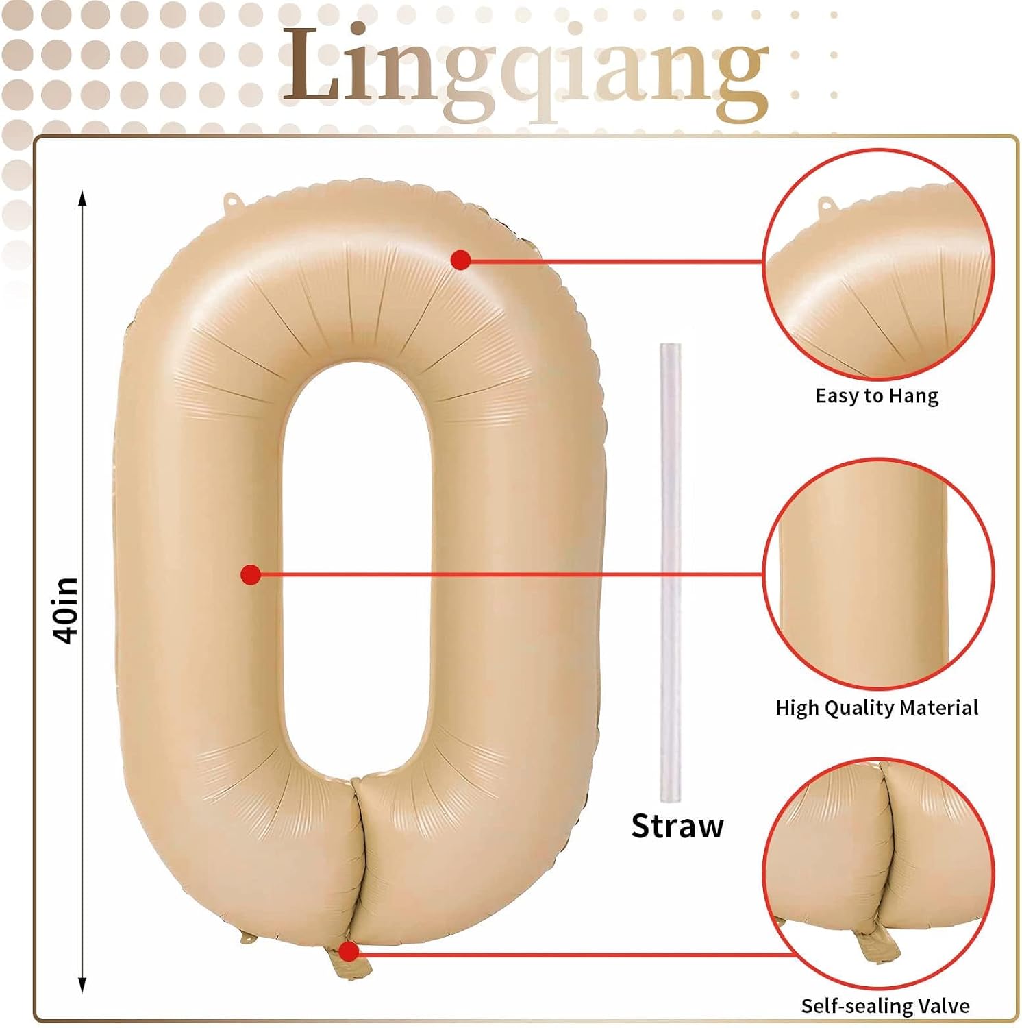 • πŸŽ‰ Easy to Inflate πŸŽ‰ - The big light brown number 0 foil balloons have self-sealing valve does not need to be knotted for easy inflation and deflation. It can be inflated with air or helium. When filled with helium, the balloons can float in the air; after filling, press the valve of the digital balloon to seal it. It can be reused. Do not throw away after use!