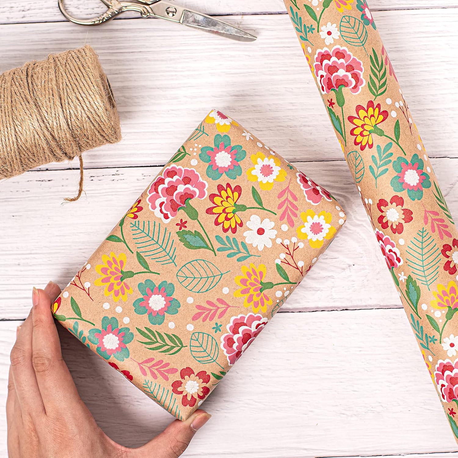 RUSPEPA Kraft Wrapping Paper Roll - Mini Roll - Carnation Design Great for Mother's day, Birthday, Party, Anniversary - 17 Inches X 32.8 Feet