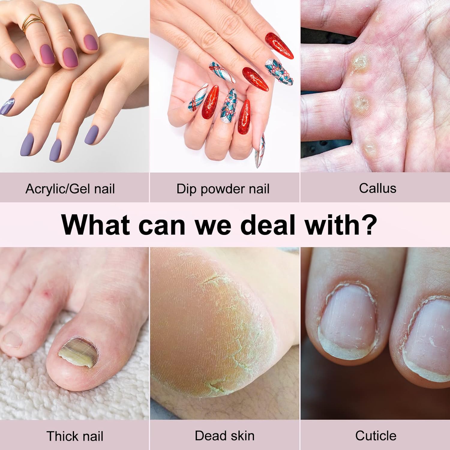 • Multifunctional for Manicure & Pedicure: With adjustable speeds and forward/reverse direction options, this nail drill machine comes with various professional grinder bits, you can customize your various manicure and pedicure routine to your liking
