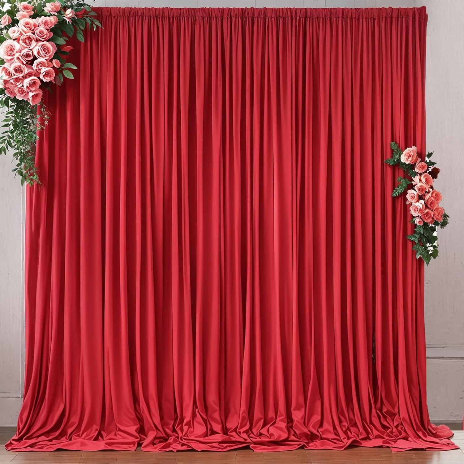 10ft x 8ft Wrinkle Free Red Backdrop Curtains for Parties, Polyester Photo Backdrop Drapes 2 Panels 5x8ft for Wedding Birthday Party Christmas Photography Background for Backdrop Stand