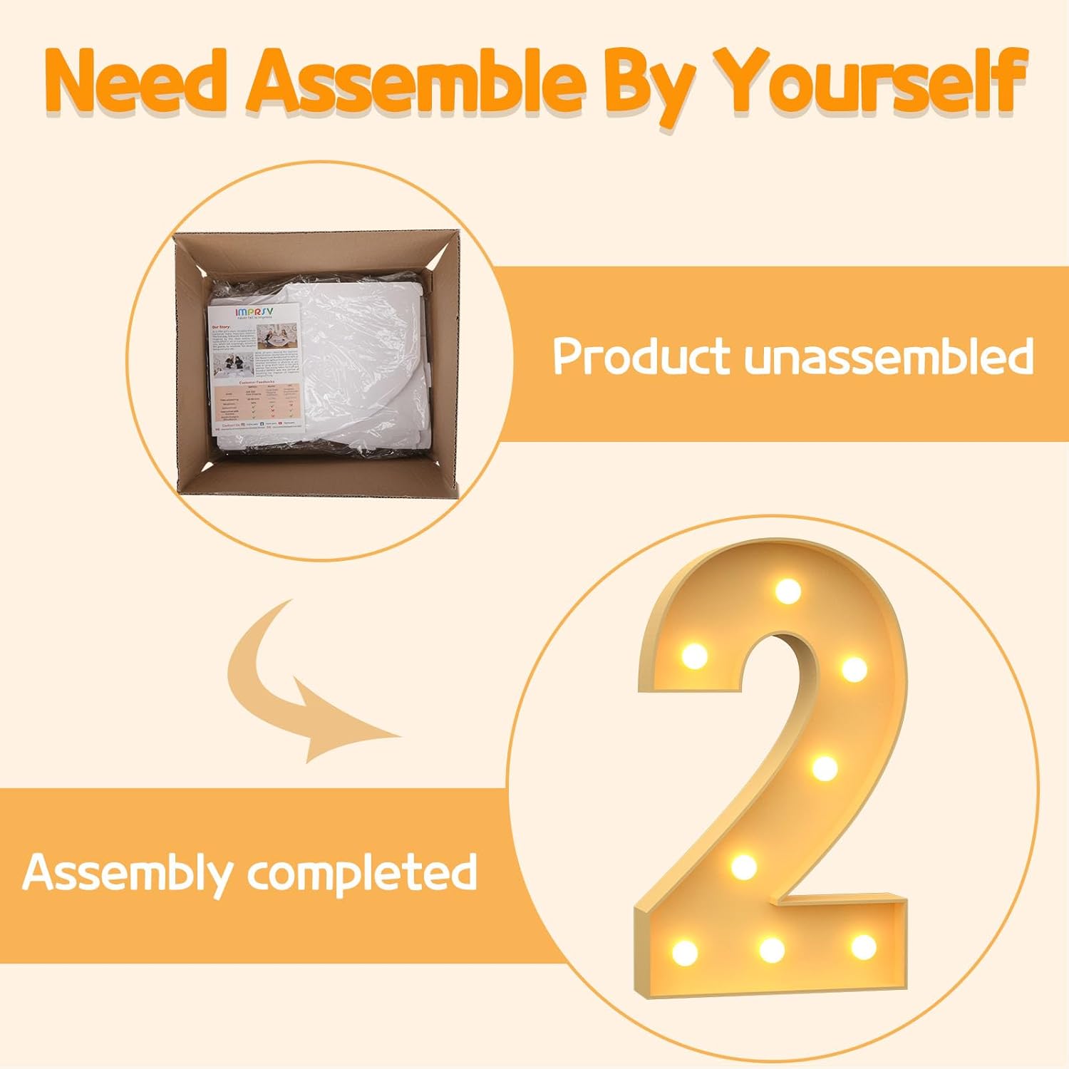 • Assembly Required: Our large marquee numbers is made from foam board and easy to assemble with our splicing mode. Just follow the numbered instructions to align and insert the bottom plate, and reinforce it with a hot glue gun. Then, you're done!