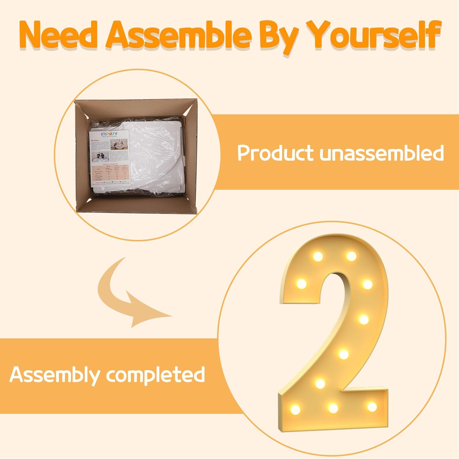 • Assembly Required: Our large marquee numbers is made from foam board and easy to assemble with our splicing mode. Just follow the numbered instructions to align and insert the bottom plate, and reinforce it with a hot glue gun. Then, you're done!