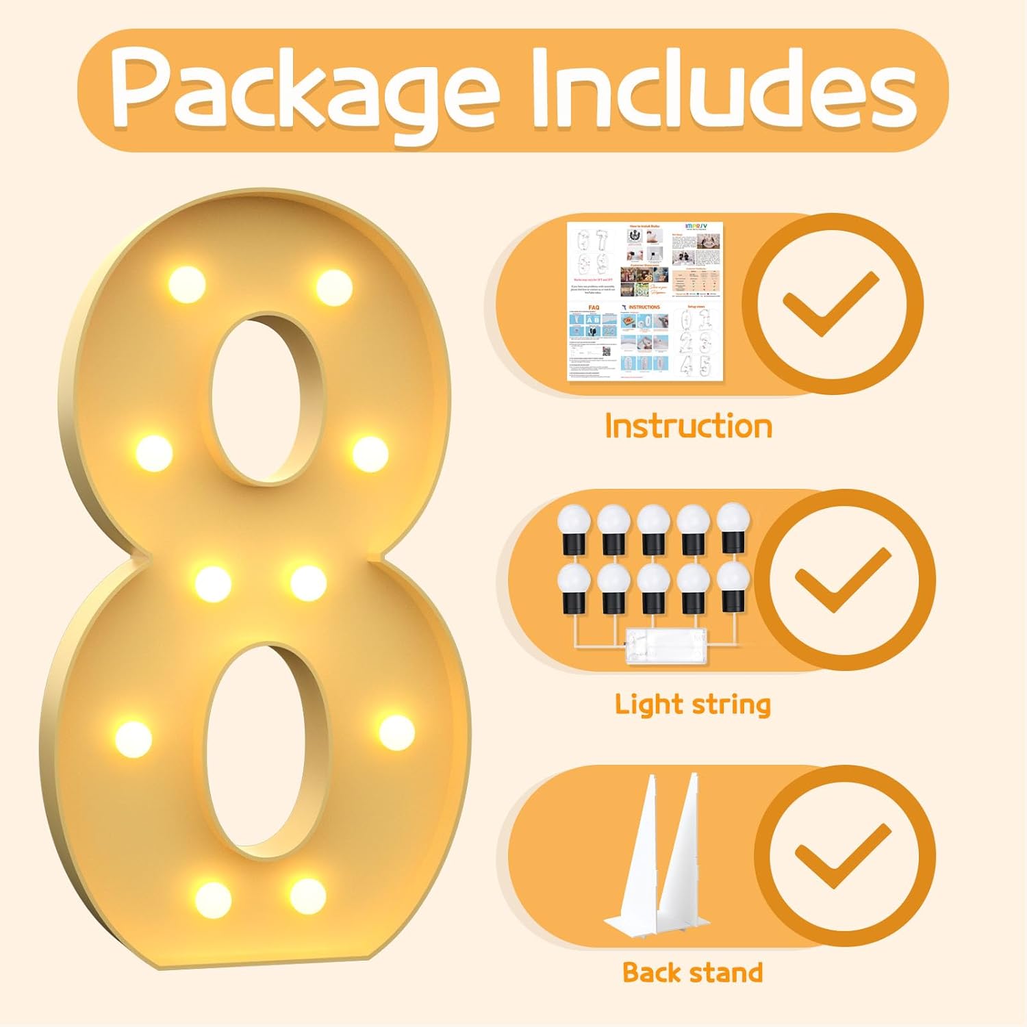 • Equipped with Light String: Light up numbers include matching light strings, so you can say goodbye to the annoyances of incompatible light strings and enjoy an effortless setup.