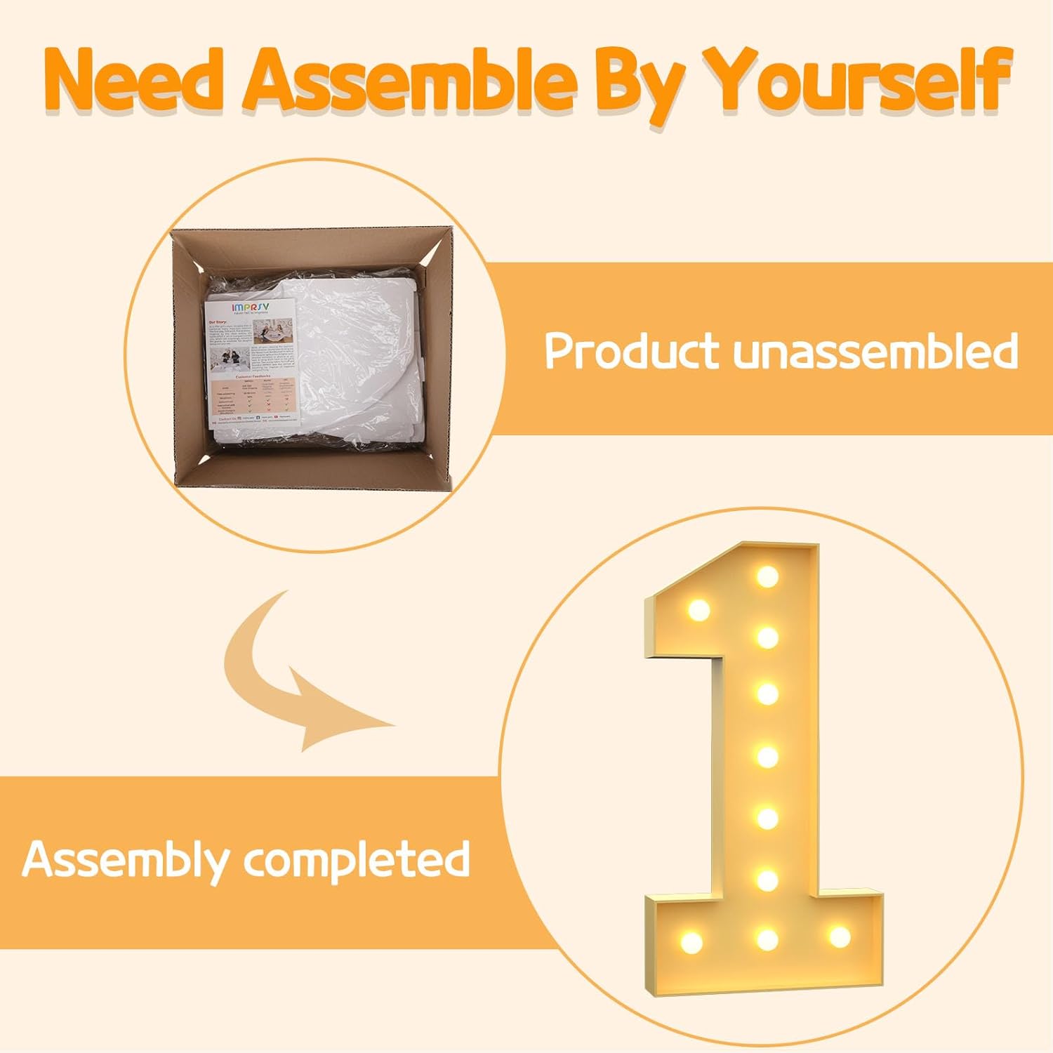 • Assembly Required: Our large marquee numbers is made from foam board and easy to assemble with our splicing mode. Just follow the numbered instructions to align and insert the bottom plate, and reinforce it with a hot glue gun. Then, you're done!