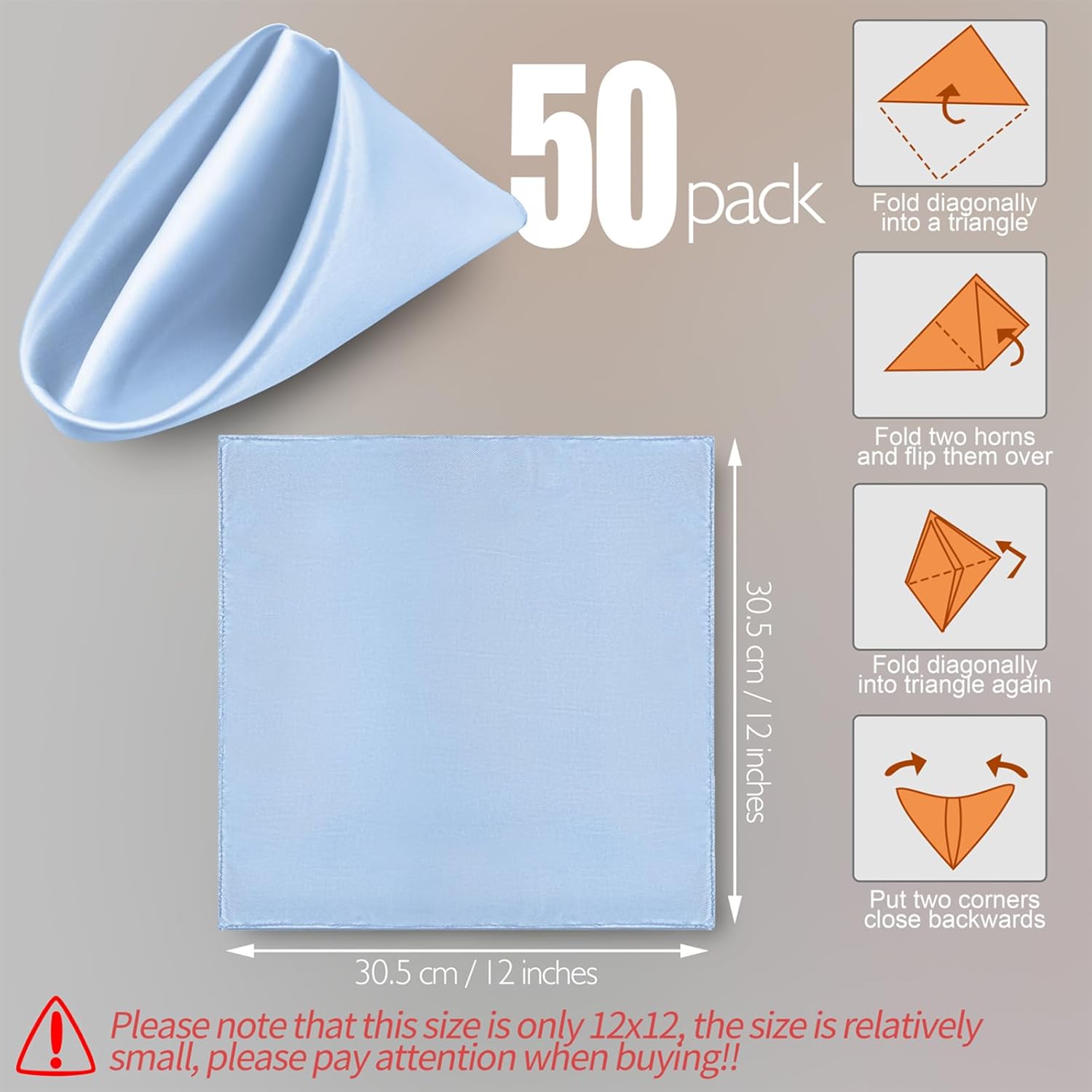 Manyshofu 50 Pieces Baby Blue Satin Napkins - 12x12 Inches Cloth Napkins, Square Satin Fabric Napkin Set - Elegant & Smooth Table Napkins for Wedding Dinner Party Lunch Banquet Restaurant Decoration