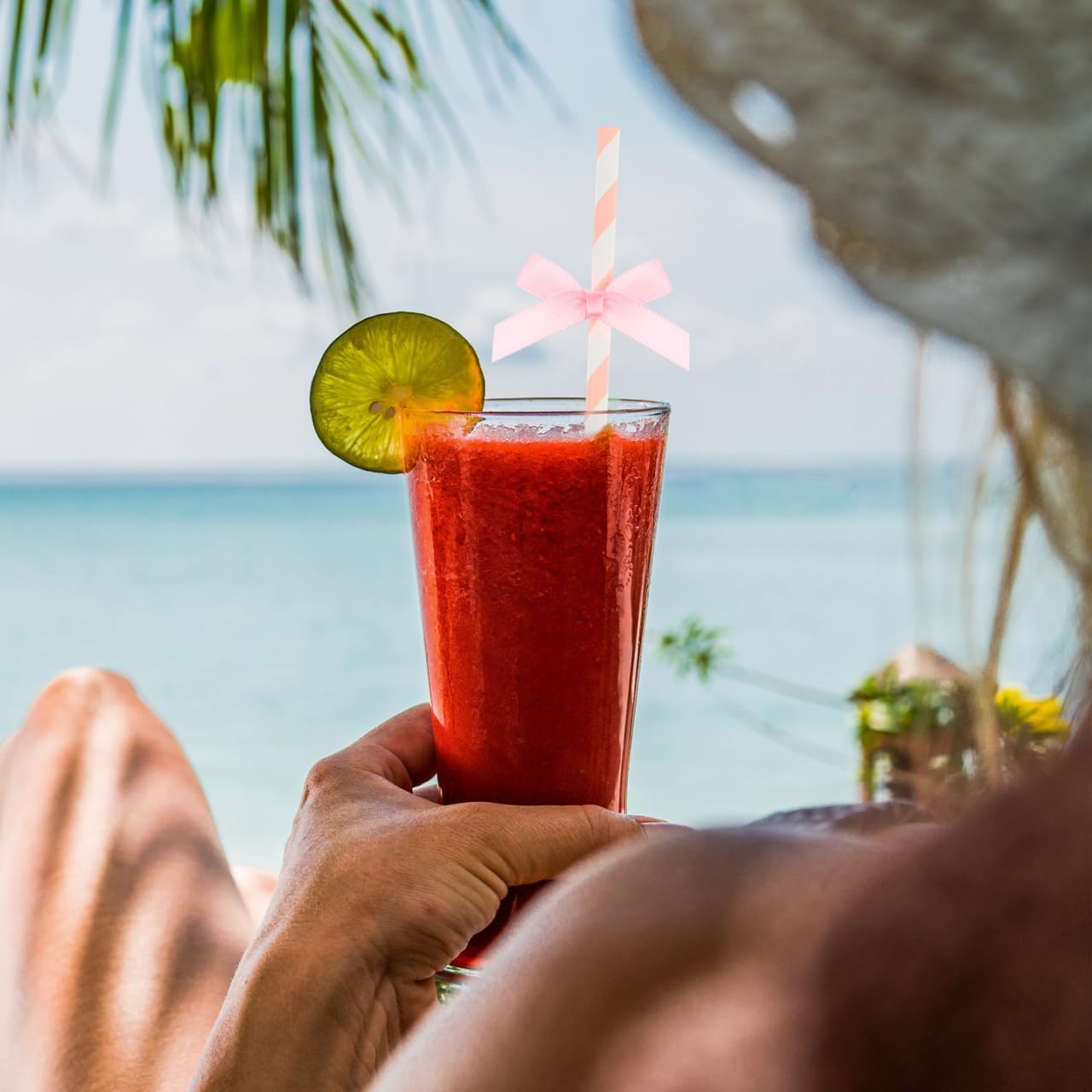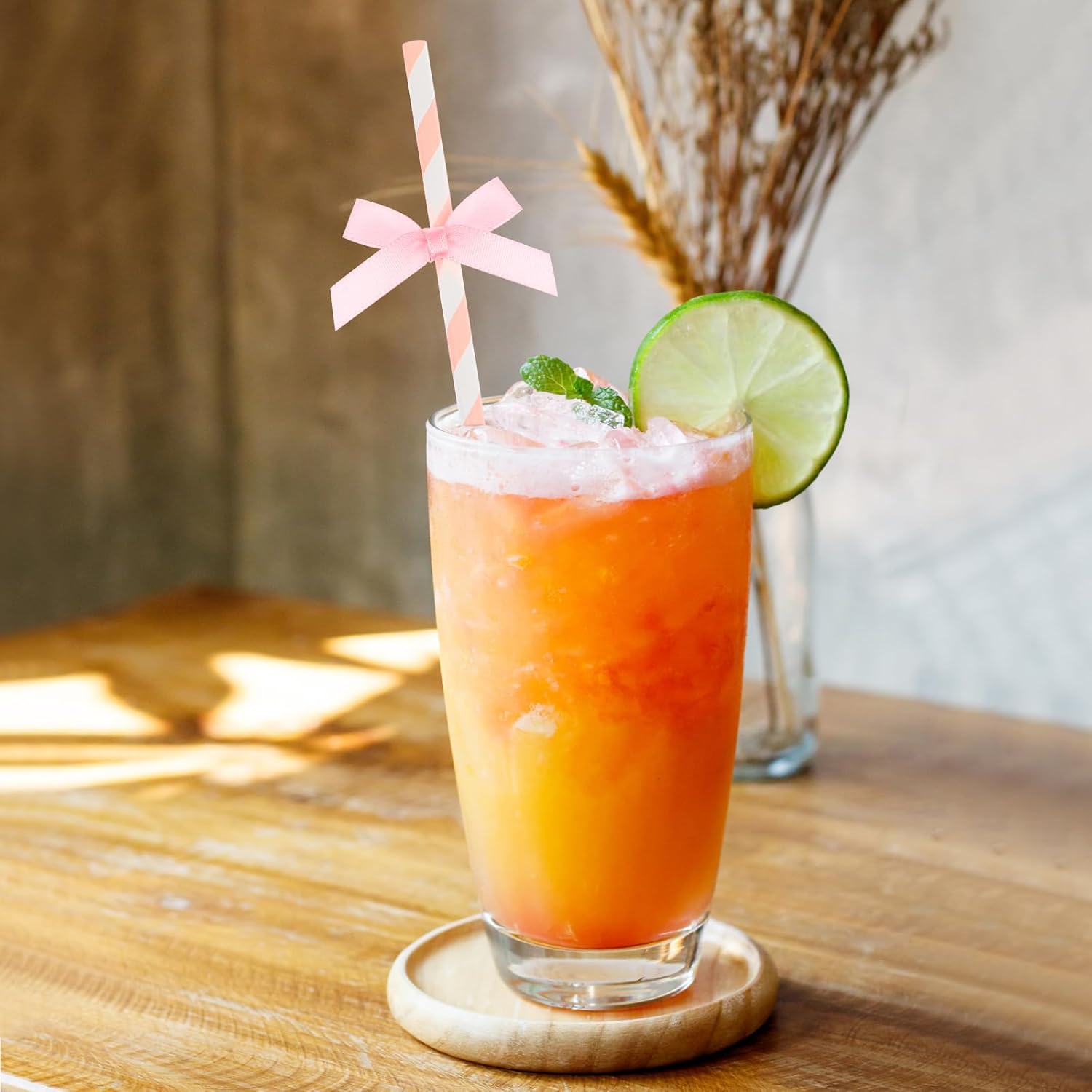 • Cute and Elegant Design: These pink paper straws are suitable for a touch of elegance and cuteness to any party or event. The pink and white striped design, along with the adorable ribbon bows on each straw, make them a great addition to any occasion