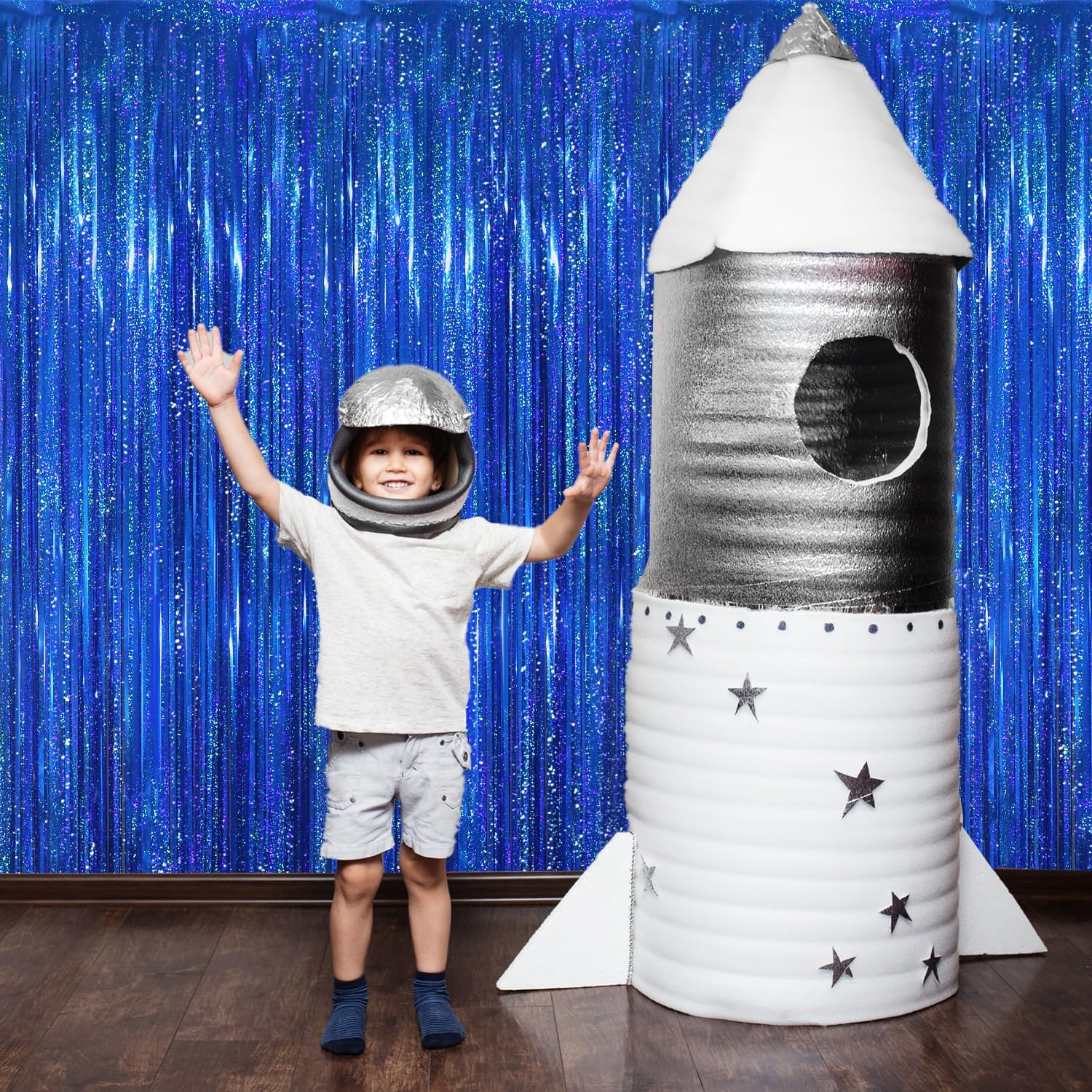GOER 3.2 ft x 8.2 ft Metallic Tinsel Foil Fringe Curtains Party Photo Backdrop Party Streamers for Birthday,Graduation,New Year Eve Decorations Wedding Decor(4 Packs,Shiny Blue)