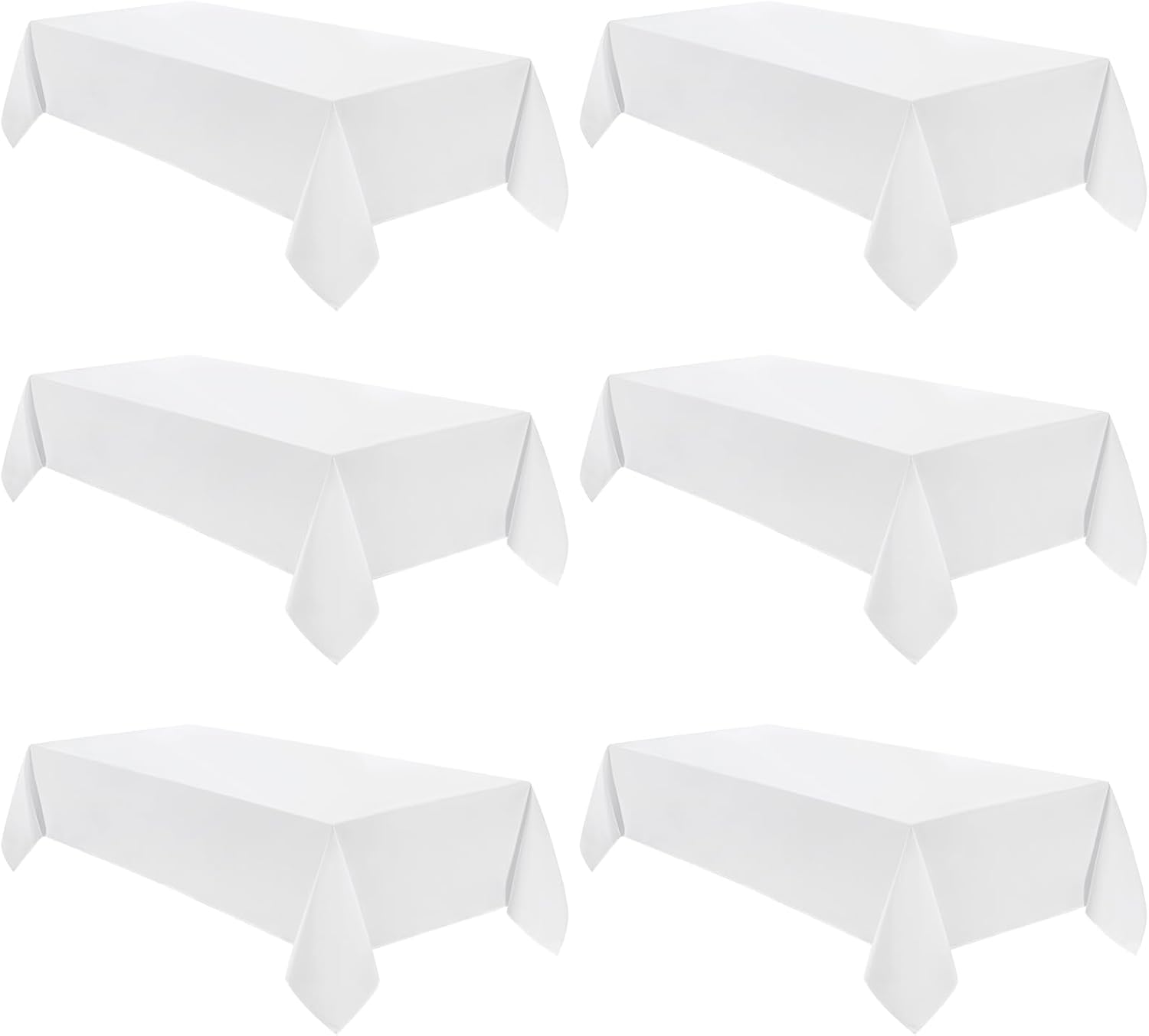 VidaFete Tablecloth 60 * 102inch 6 Pack Rectangle Table Cloth Polyester, Stain Wrinkle Resistant Dining Table Cover for Kitchen Dinning Party Wedding Rectangular Tabletop Buffet Decoration(White)