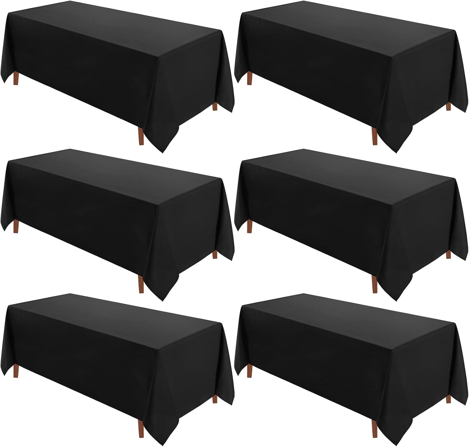 VidaFete Table Cloth 90 * 132inch 6 Pack Rectangle Tablecloth Polyester, Stain Wrinkle Resistant Polyester Dining Table Cover for Kitchen Dinning Party Wedding Rectangular Tabletop Decoration(Black)
