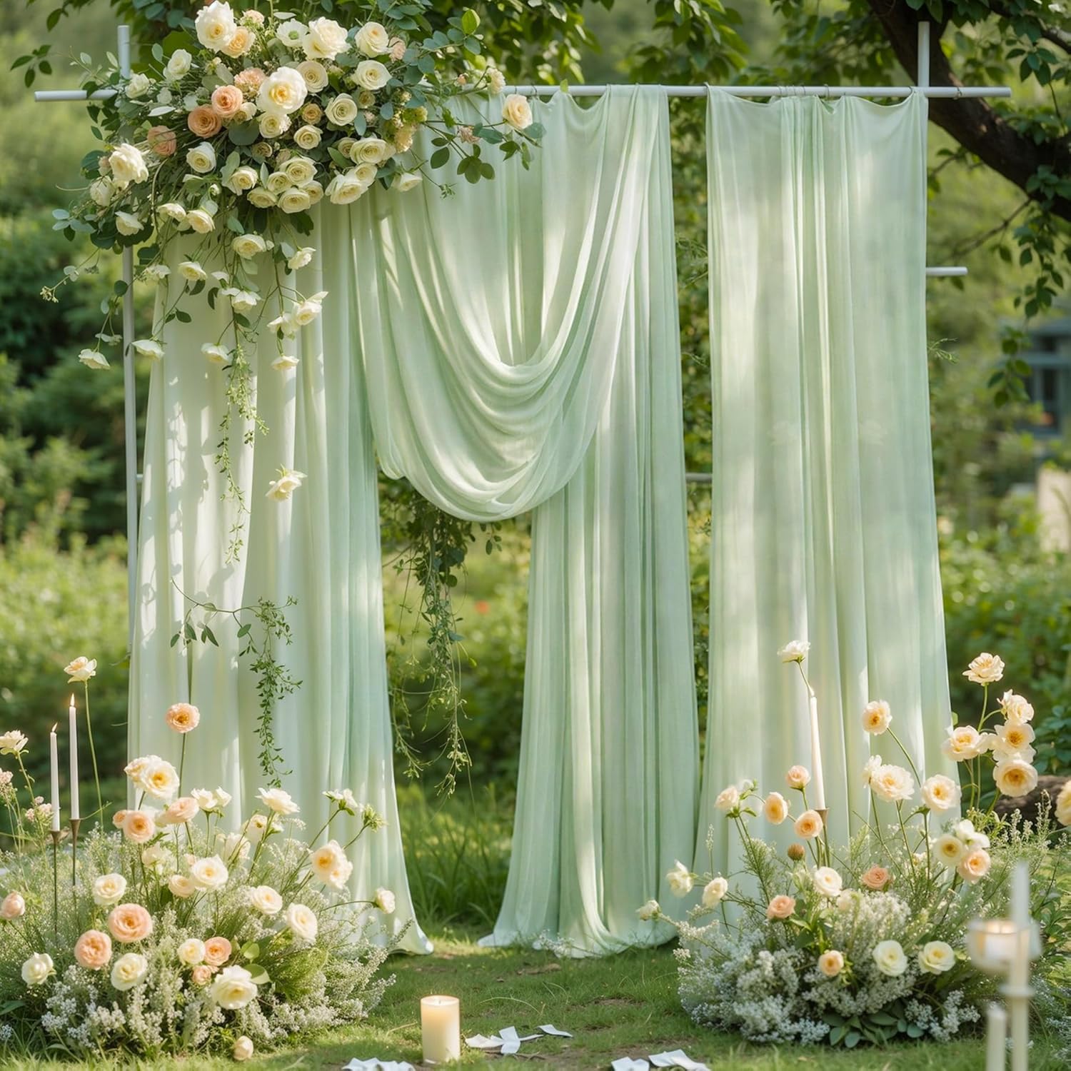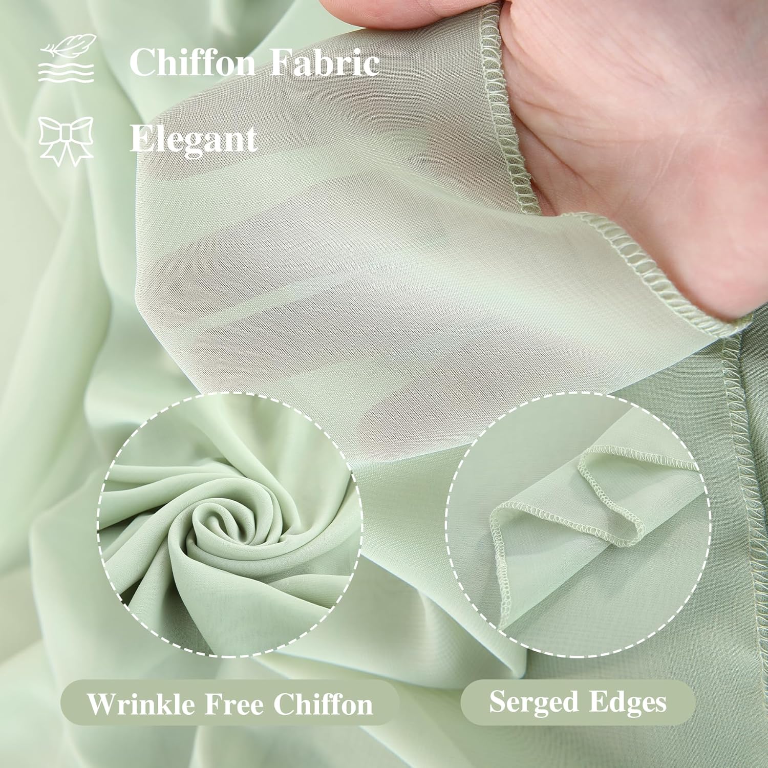 • What You Get: Including 1 panel sage green chiffon wedding arch fabric, each panel is 29" wide by 6 Yards (216 inches) long. Voile sheer chiffon draping fabric are good choice to decorate your wedding arch arbor.