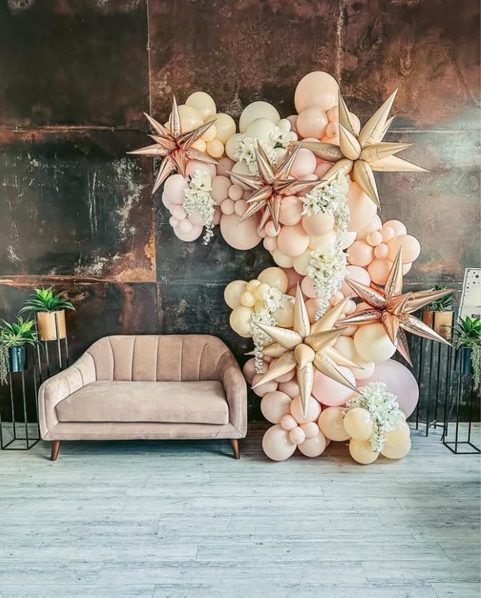 3pcs 26inch caramel Star foil balloons.blush Explosion Star burst star balloon-Spike cone balloon for birthday party decorations,wedding,Bachelor party