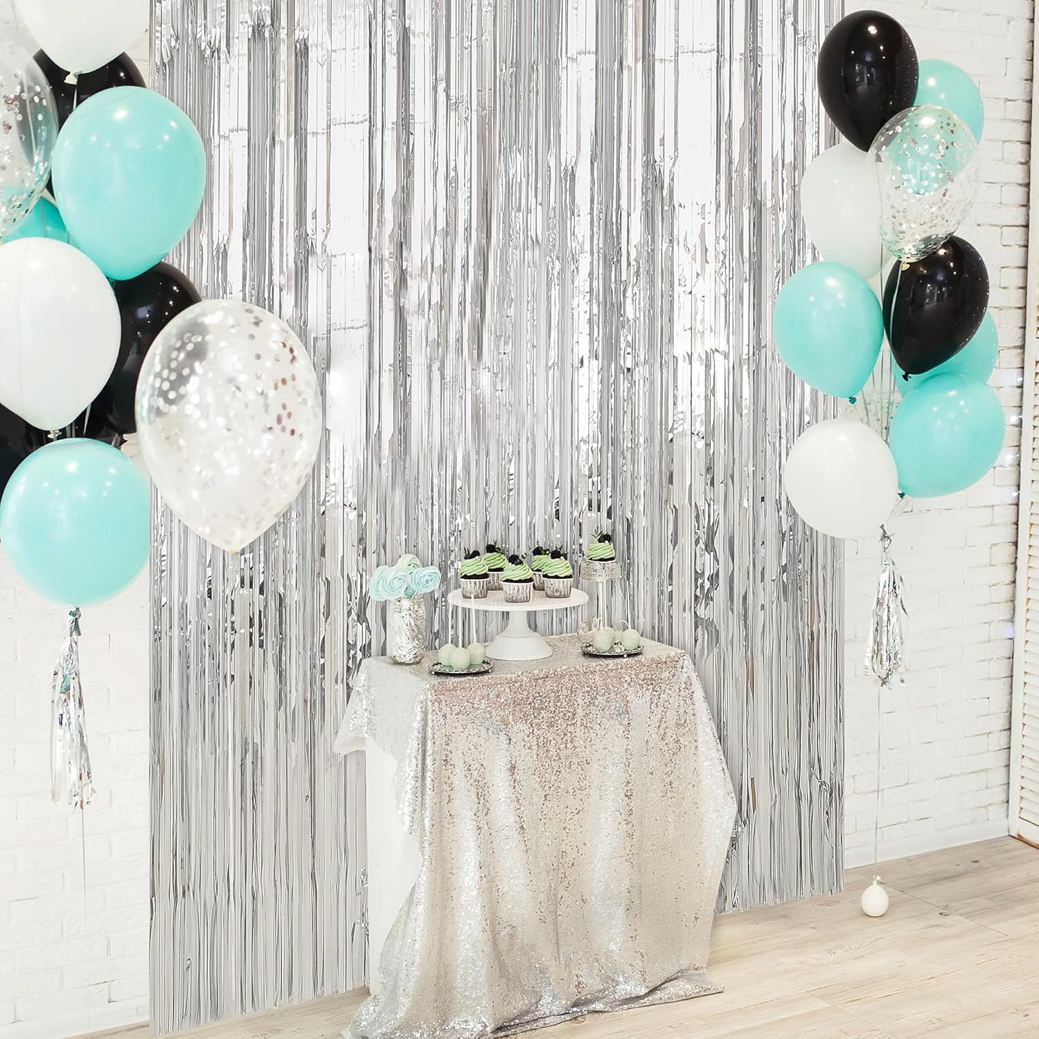 Crosize 3 Pack 3.3 x 9.9 ft Silver Foil Fringe Backdrop Curtain, Streamer Backdrop Curtains, Streamers Birthday Metallic Paper Party Decorations, Tinsel Curtain for Parties, Photo Booth Backdrops