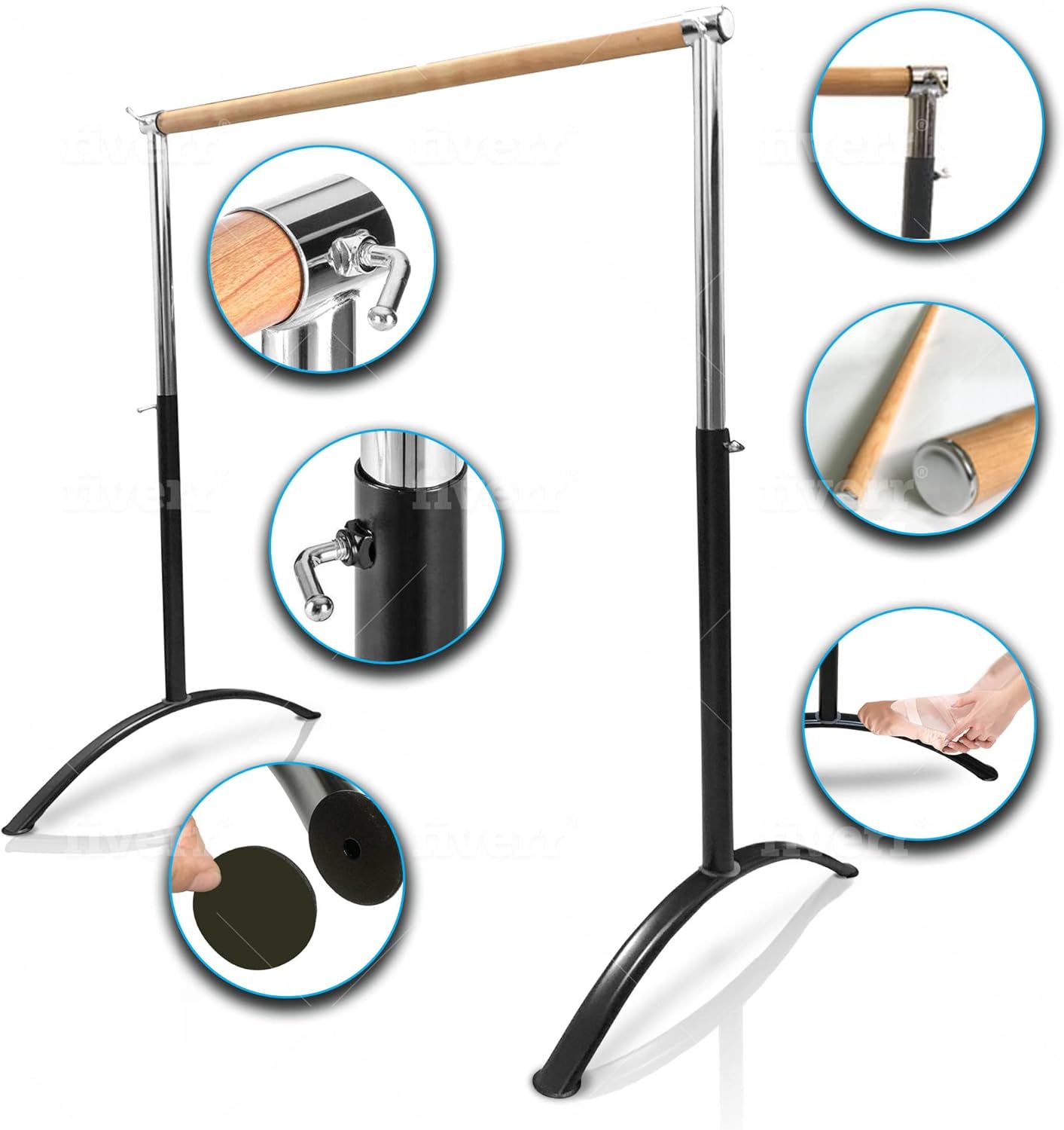 • Quick Adjustable Height โ€“ The innovative design lets you easily raise or lower the dance barre height to better suit any height, age, or ability level. Great for beginners and seasoned athletes, itโ€™s made for reliable support.