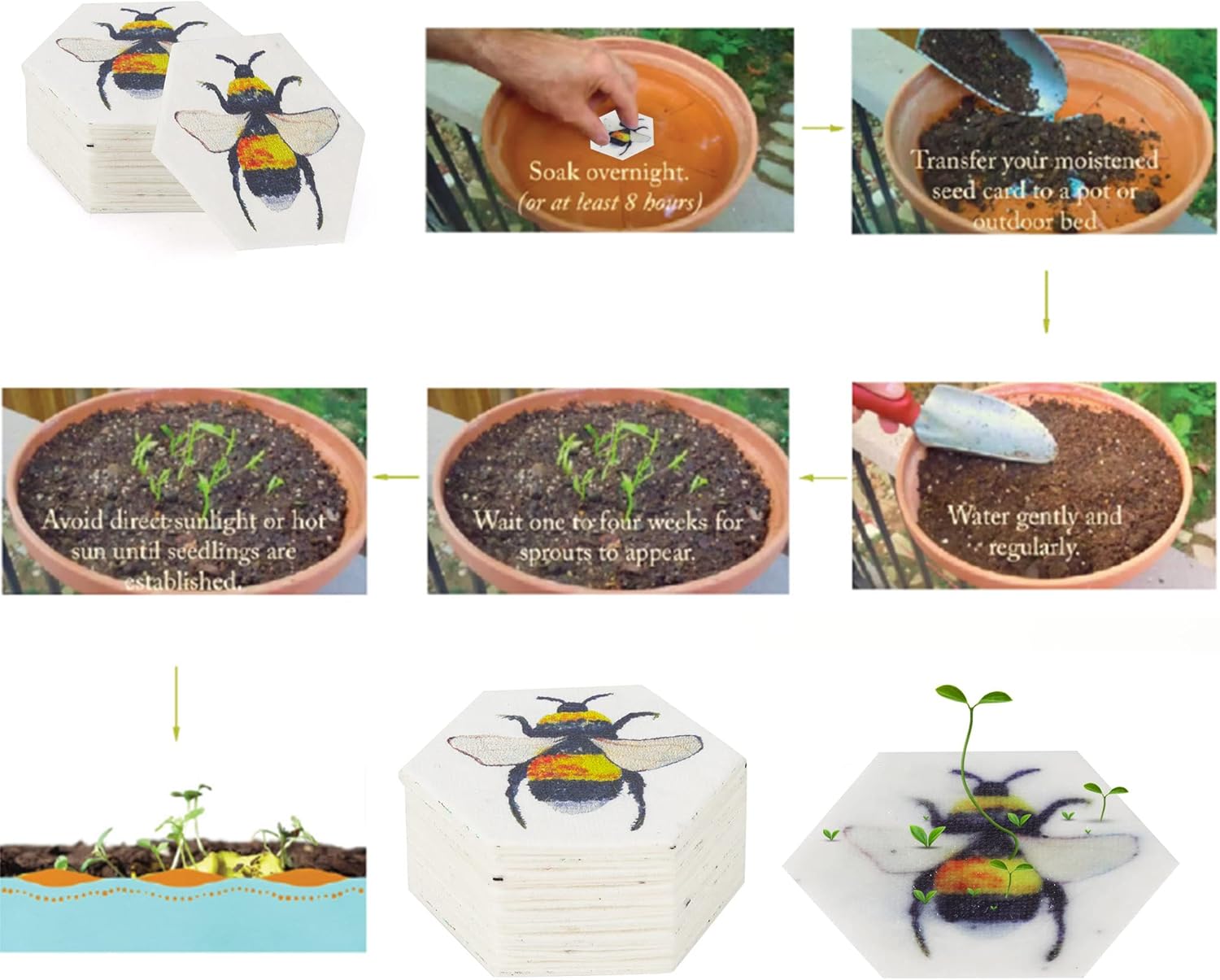 • Once you plant the paper in a pot with soil or outside in the garden, the paper germinate and turn into beautiful flowering plants.