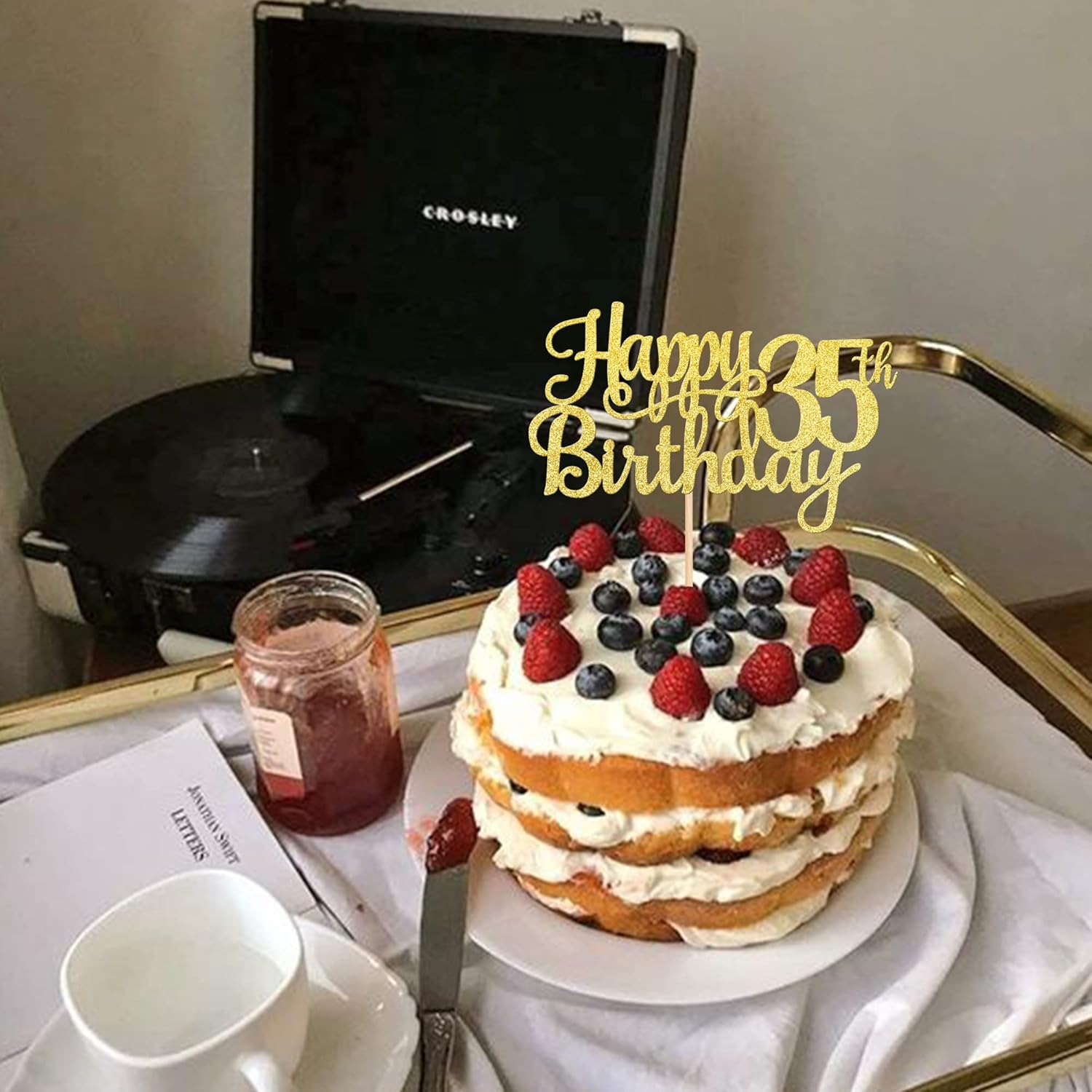 1 PCS Happy 35th Birthday Cake Topper Gold Glitter Cheers to 35 Years Birthday Cake Pick 35 Fabulous Cake Decoration for Happy 35th Birthday Theme Party Decorations Supplies