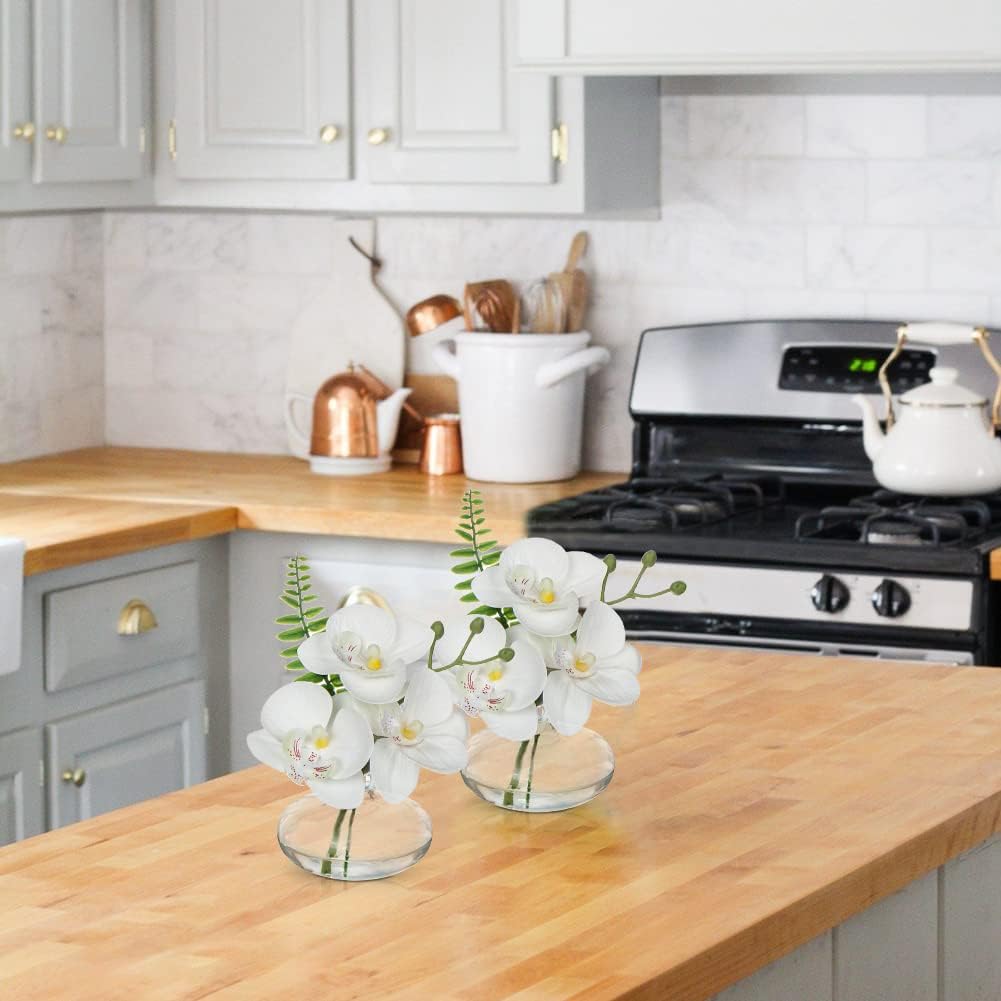 White Orchids Artificial Flowers Faux Orchids Arrangement in Clear Glass Vases Set of 3 Real Touch Phalaenopsis Orchid Flowers Small Fake Orchid Centerpiece for Dining Room Table