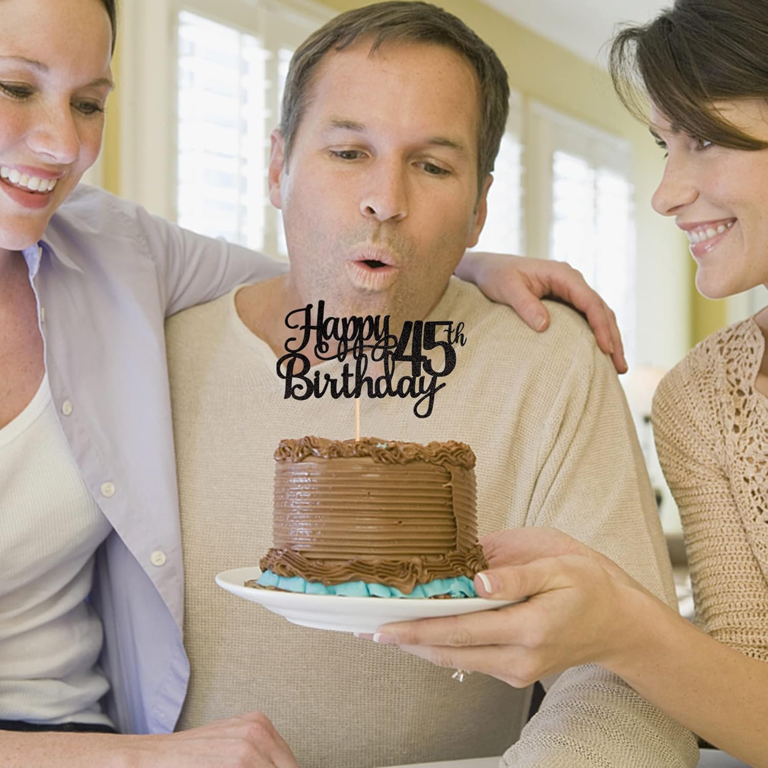 1 PCS Happy 45th Birthday Cake Topper Glitter Cheers to 45 Years Birthday Cake Pick 45 Fabulous Cake Decoration for Happy 45th Birthday Theme Party Decorations Supplies Black