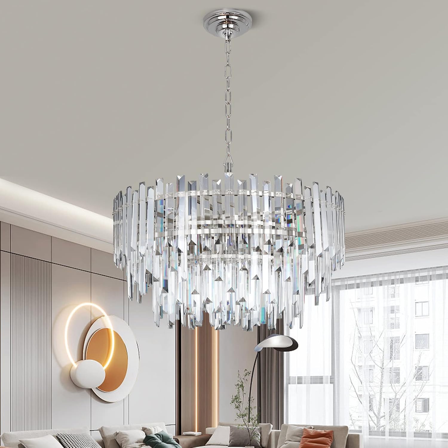Crystal Chandelier Lighting 24'' Chrome for Dining Rooms Bedroom Foyer Entryway Ceiling Hanging Pendant Chandelier Light Fixture Lamp