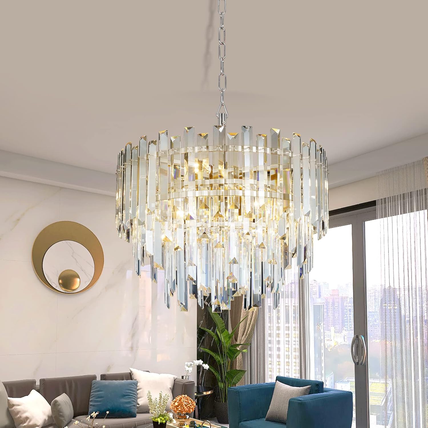 • 【Top Grade K9 Crystal】Our chandelier crystals use top K9 materials. Every crystal chandelier light fixture has strong light transmittance and refractive properties,Perfect for kitchen, bathroom, girls room, living room, closet, dinning room, hallway, schoolhouse, breakfast nook, entry-way, tub, bathtub, entry room, porch, dinette kitchen. Balcony, home bar, walkway, clothing store