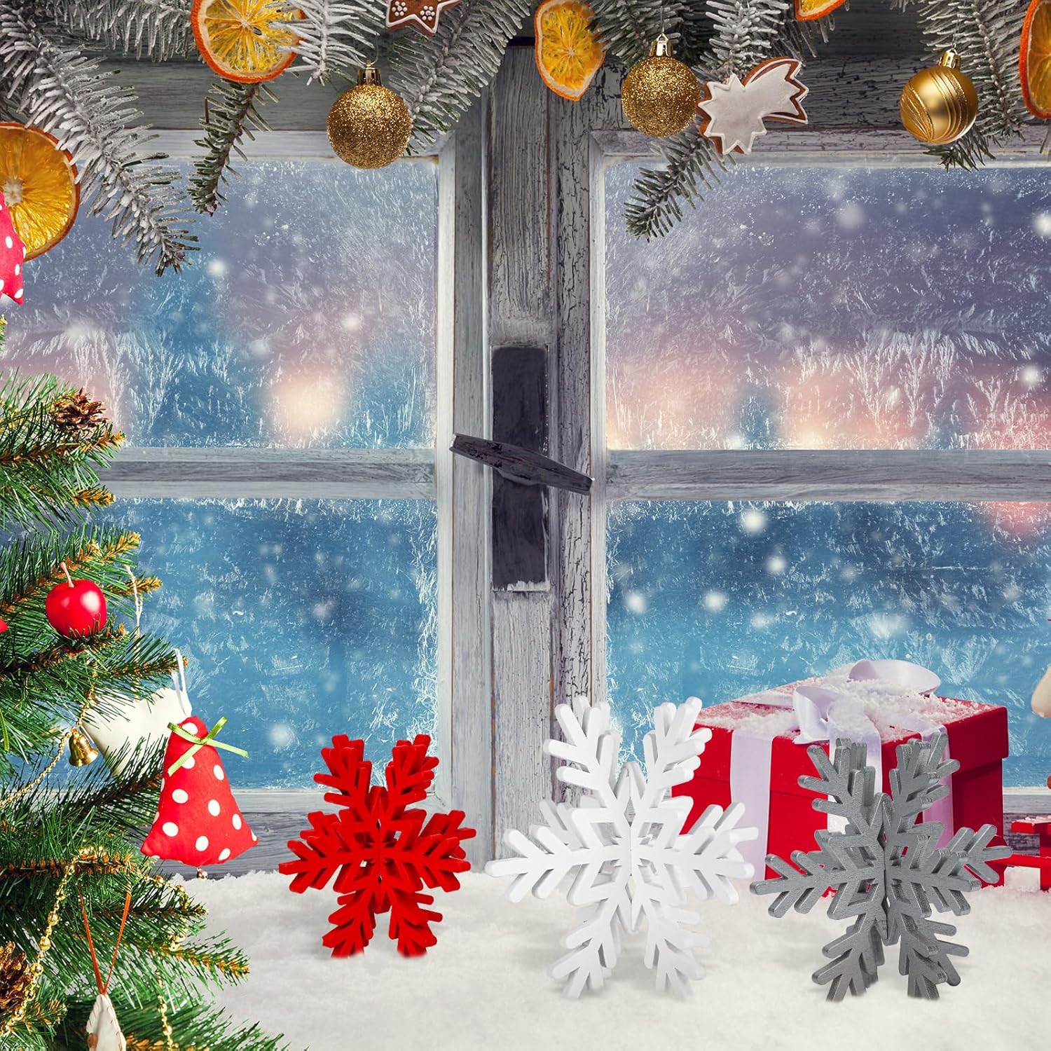 Qunclay 20 Pcs Wooden Snowflake Decorations 3D Snowflake Tabletop Decor Christmas Signs and Centerpiece for Winter Wonderland Decorations Xmas Tiered Tray Decor(Red, Gray, White)