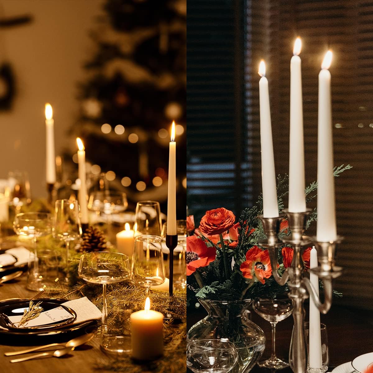 • A CLASSY ROMANTIC TOUCH: Spice up the romance with a candlelit dinner with your loved one. With a universal fit, they fit most candlesticks and candelabras - perfect for indoor and outdoor use. White unscented candles to avoid overpowering the moment